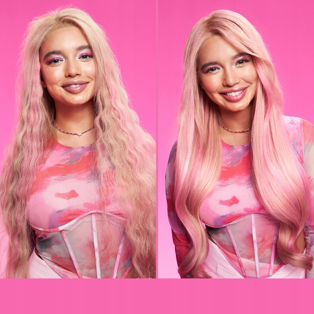Ефект, досягнутий за допомогою системи Instacure Build-A-Bond, що складається з шампуню, кондиціонера, рідкої маски та бальзаму.