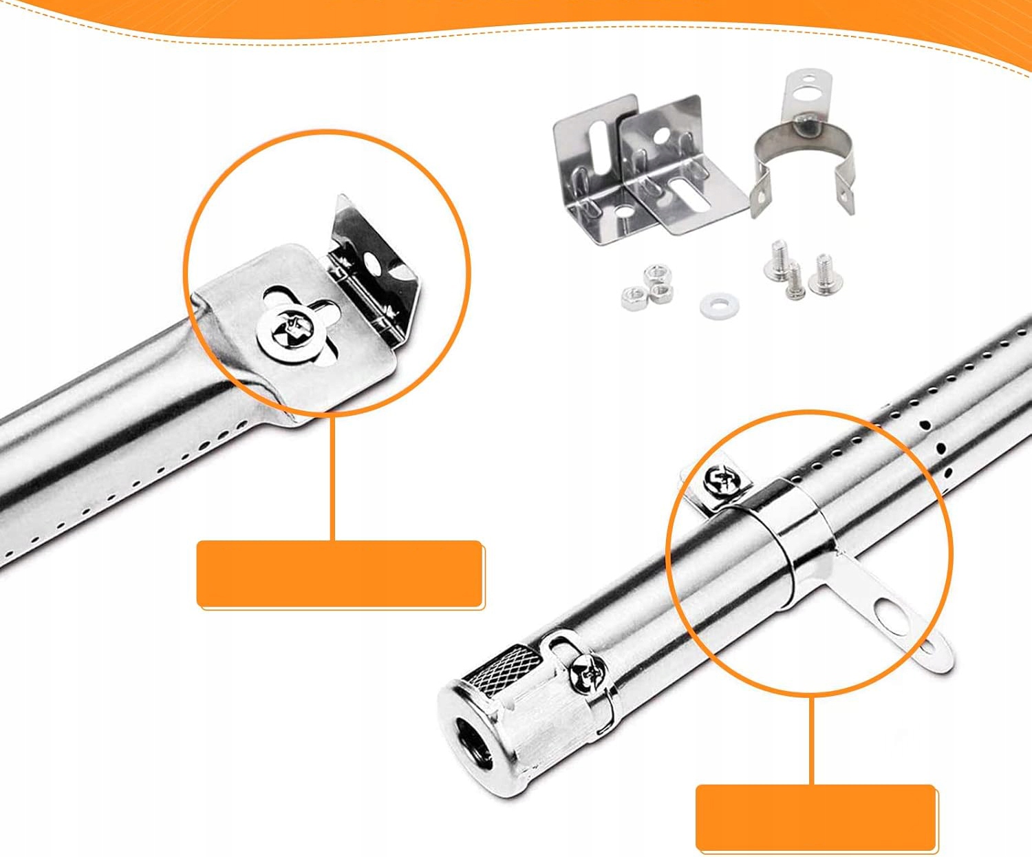 Всі елементи набору виготовлені з високоякісної нержавіючої сталі, яка стійка до корозії та легко миється. Завдяки цим властивостям аксесуари не тільки продовжують термін служби вашого гриля, але й підтримують здорове приготування на грилі, оскільки вони не вводять у їжу небажаних речовин. Ми пропонуємо набір, який складається з 4 пальників, 4 запальників і 4 кришок, що робить його повним комплектом запчастин. Кожен із цих компонентів легко встановити, що дозволяє швидко замінити старі деталі без необхідності купувати новий гриль.