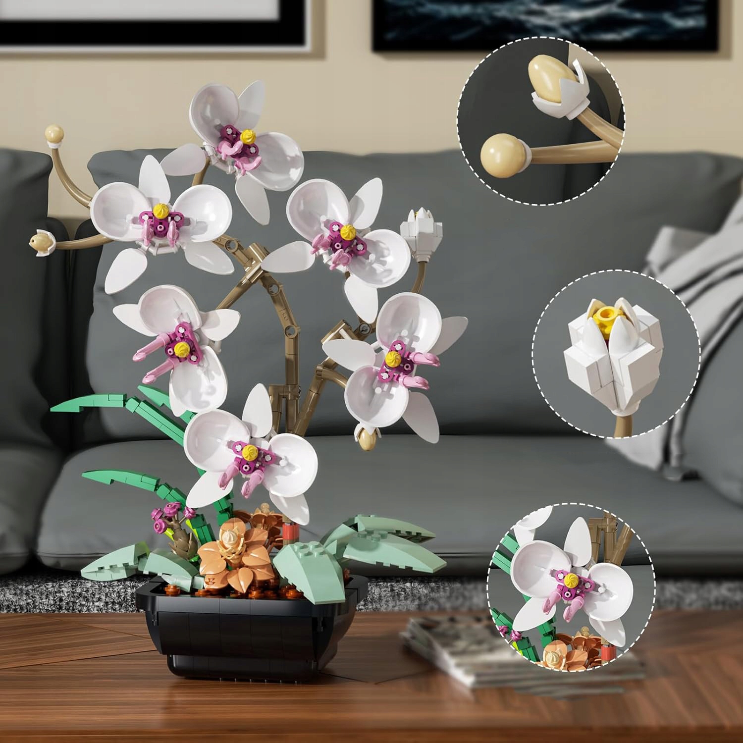Ідеальна прикраса для дому: цей набір для складання букета орхідей має точну форму з щільно з’єднаних елементів, які не роз’єднуються. Усе це виглядає надзвичайно красиво. Це значний будівельний проект, який використовується для створення колекції рослин, які збагатять декор вашого будинку чи офісу. Після роботи чи повсякденних справ ви зможете помилуватися чудовими орхідеями та покращити собі настрій.