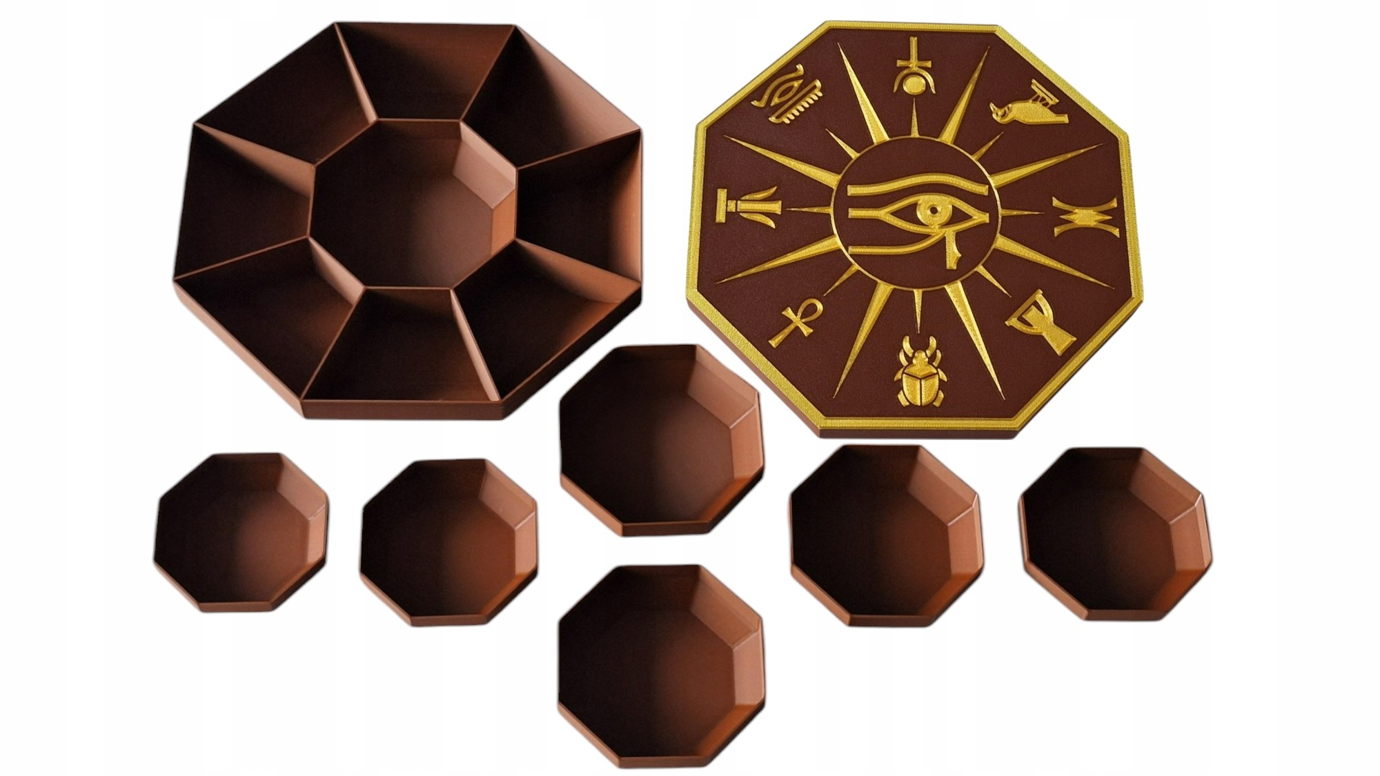 Як красиво цілі представляють додані фотографії, у цій рекламі продає коричневий набір з мотивом єгипетських знаків