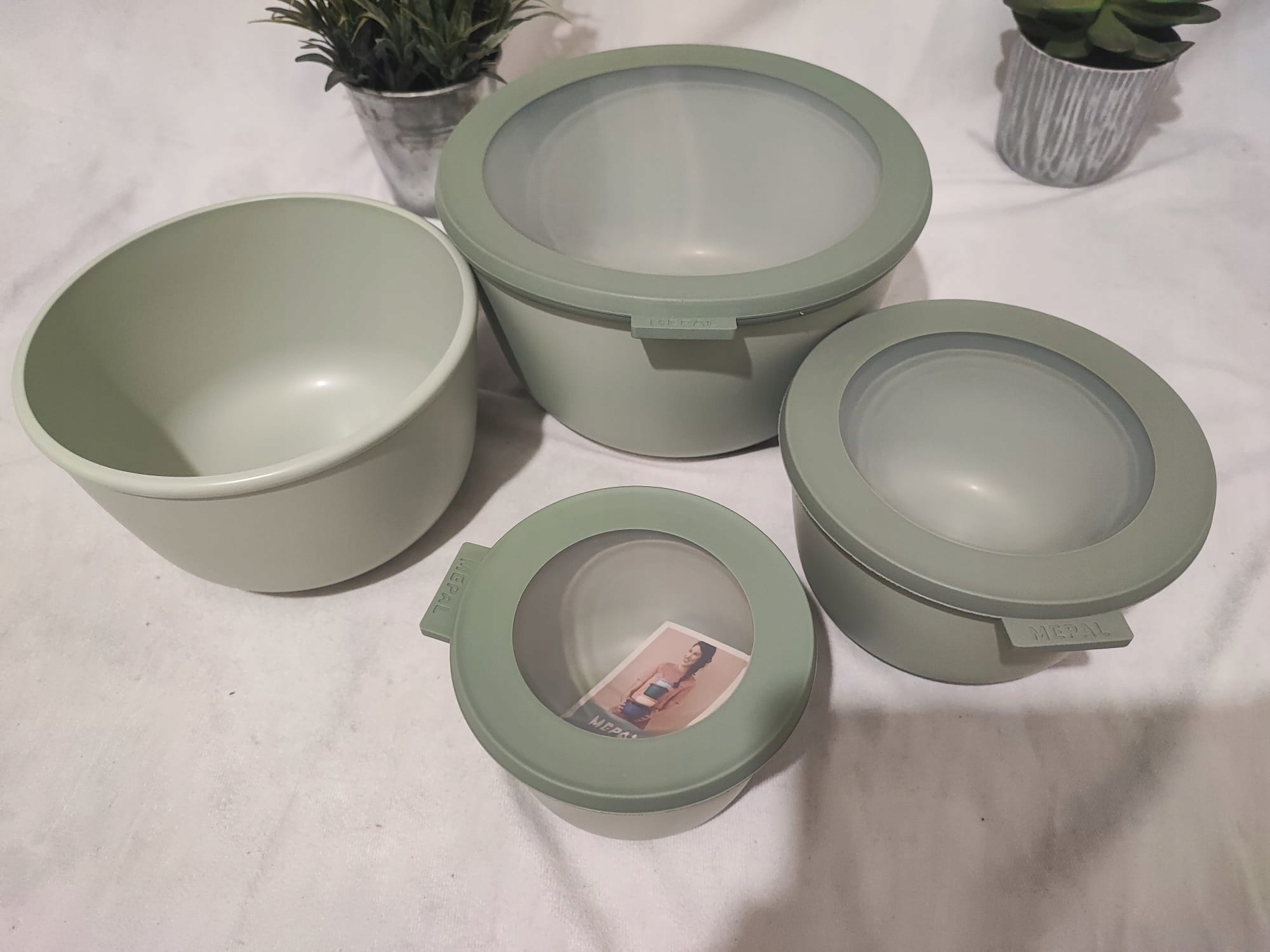 Набір Mepal Cirqula з 4 щільних високих кухонних чаш для мікрохвильової печі та морозильника кольору Nordic Green