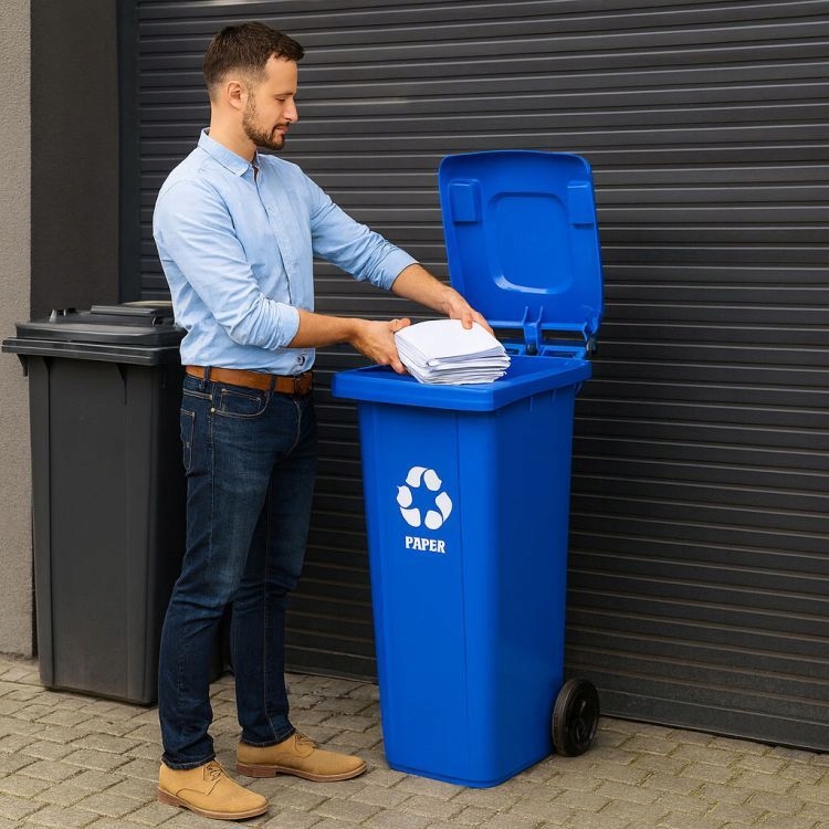 - Blue bucket - paper (newspapers, notebooks, cardboard, boxes, catalogs)