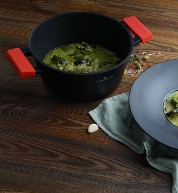 Zwieger спеціалізується на виробництві висококласного кухонного посуду. Його пропозиція включає міцні каструлі функціональної форми, які забезпечують чудовий комфорт у приготуванні їжі, стійкі до подряпин і високих температур. Горщики доступні з алюмінію або нержавіючої сталі. Вони підходять для використання в різних типах плит, від традиційних газових до сучасних індукційних плит. Матеріал, який використовується при виготовленні, міцний, стійкий до пошкоджень і нейтральний до смаку їжі. Каструлі мають зручні стійкі ручки і практичні кришки. Їх також можна мити в посудомийній машині.
