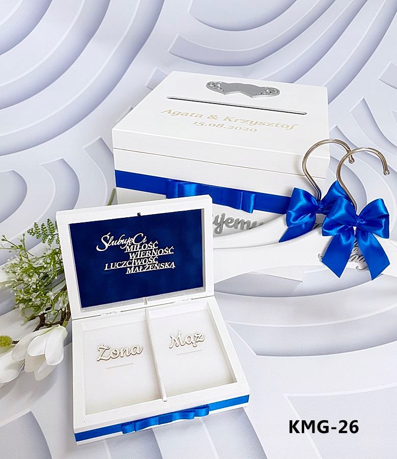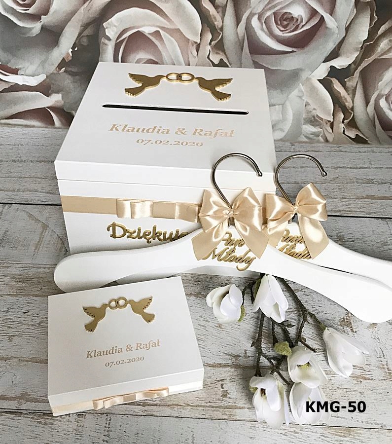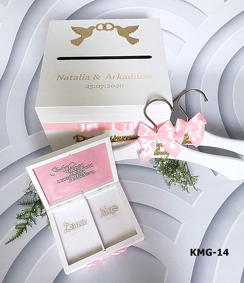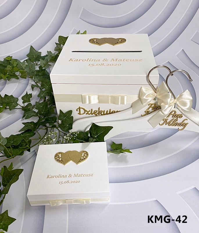 На зовнішню сторону коробки приклеєний об'ємний декор у вигляді голуба або серця ( золотий або сріблястий лакований декор) залежно від обраної моделі