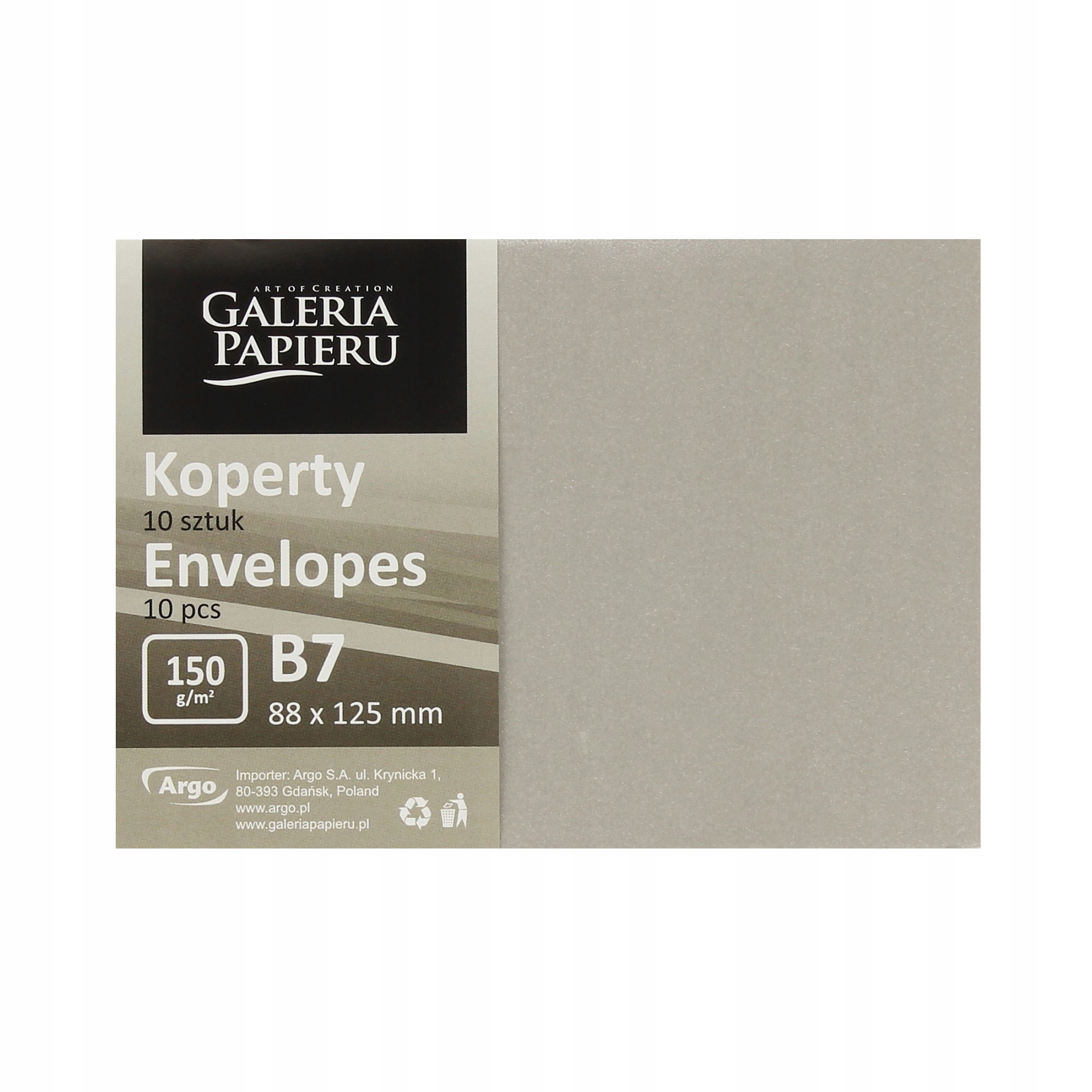Набір В7 декоративних КОНВЕРТІВ СРІБНИХ НАБІР 10 шт. PAPER GALLERY