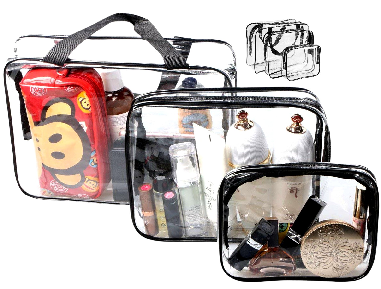 Набір складається з трьох косметичок із прозорого ПВХ пластику