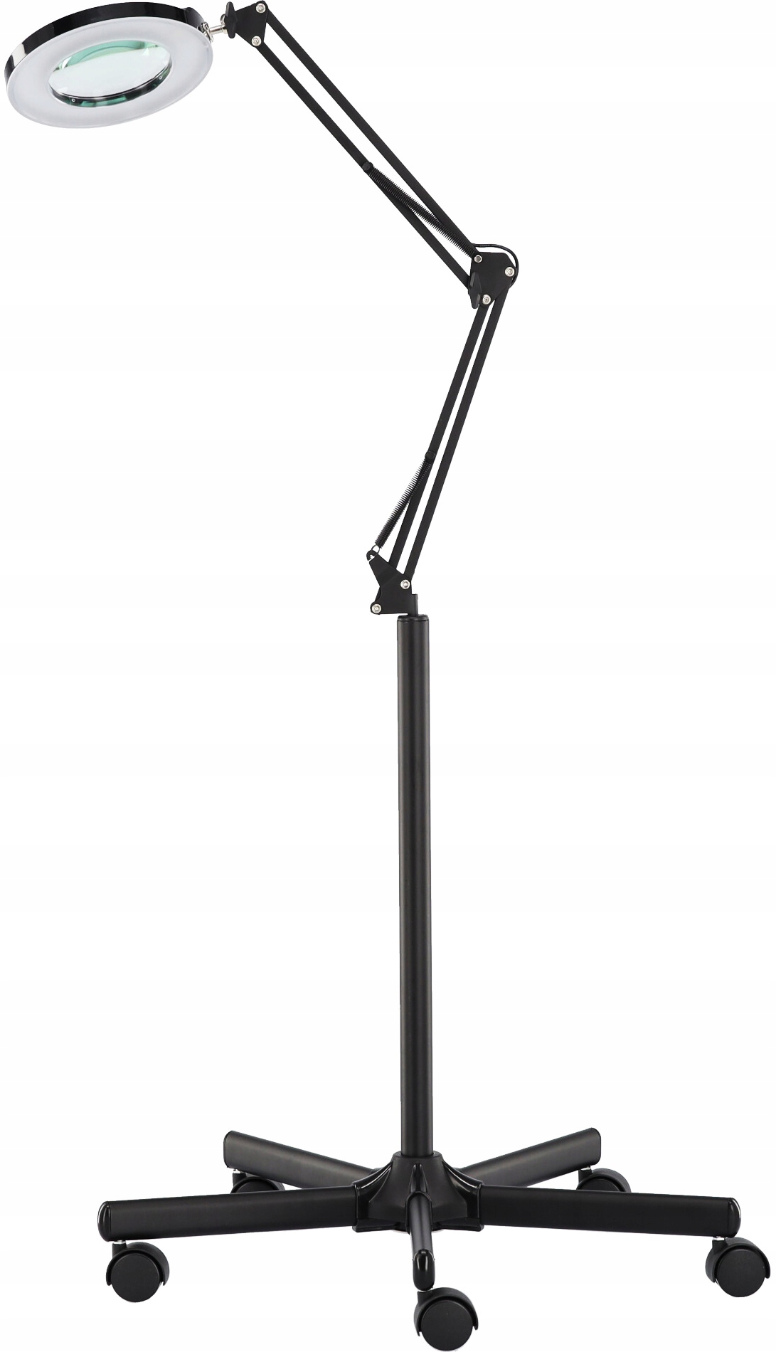 Лампа на стійкому чотириплечому штативі на колесах.