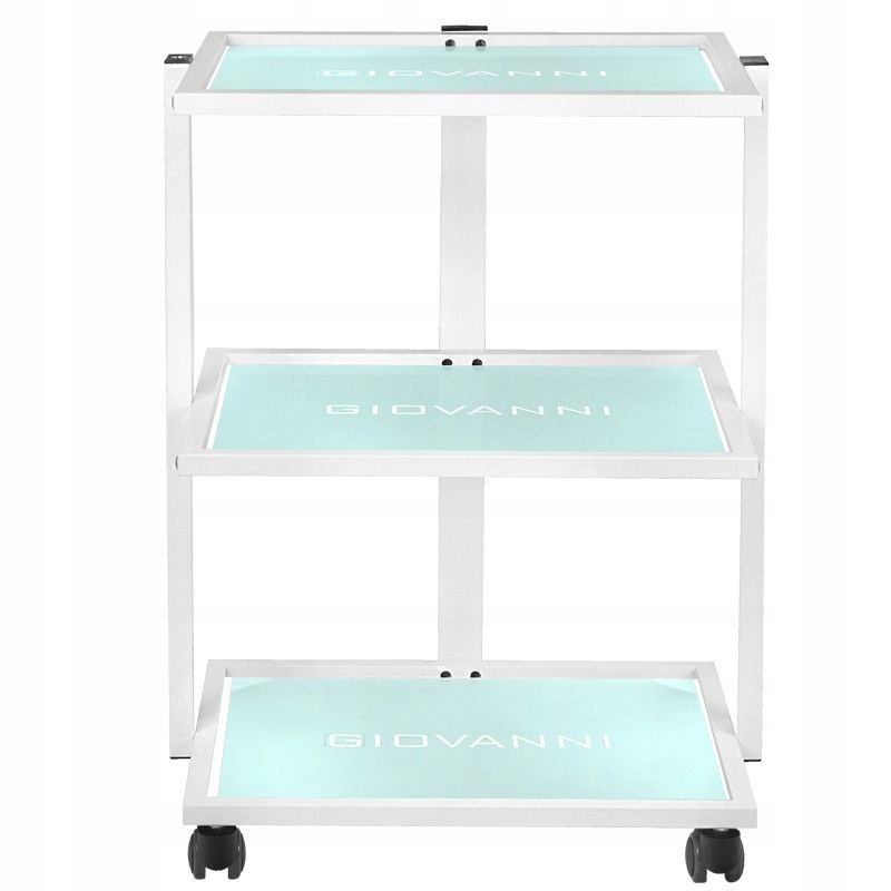 з прогумованими колесами. Має три скляні полиці з вигравіруваним логотипом GIOVANNI. До нього можна прикріпити збільшувальну лампу.
