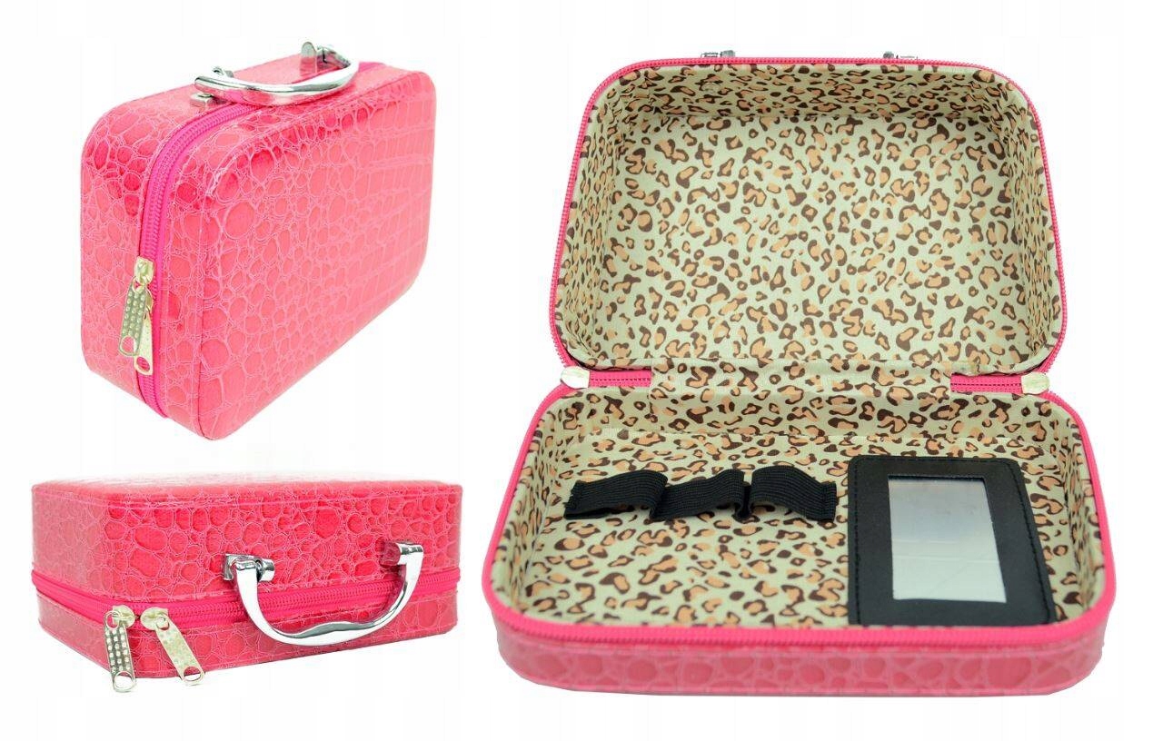 Набір включає най необхідні аксесуари для макіяжу , такі як тіні для очей, блиск для губ, рожевий на щоках і Кисті для розгортання продуктів. Він має зручну ручку , тому її також можна використовувати як стильну сумочку . Чотири ноги встановлені знизу, і воно відкривається, залишаючи замок. Агент - це делікатна оболонка з крапковою тканиною . який ви можете переглядати. Ціле зроблено надзвичайно уважно і виглядає дуже професійно .