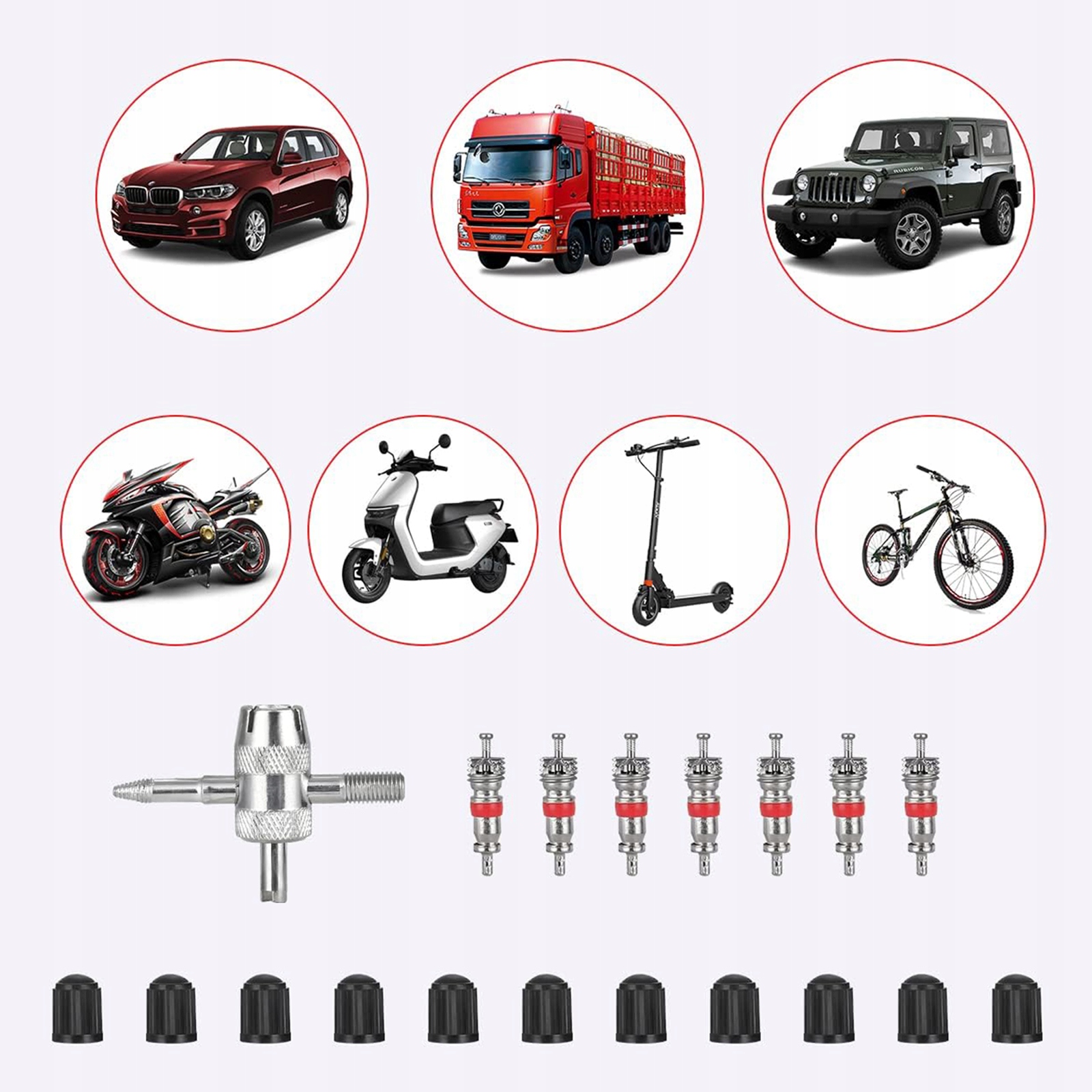 ⏩Включає важелі для шин, сердечники клапанів, гнізда та інструменти – усе, що вам потрібно для швидкої та легкої заміни шин.