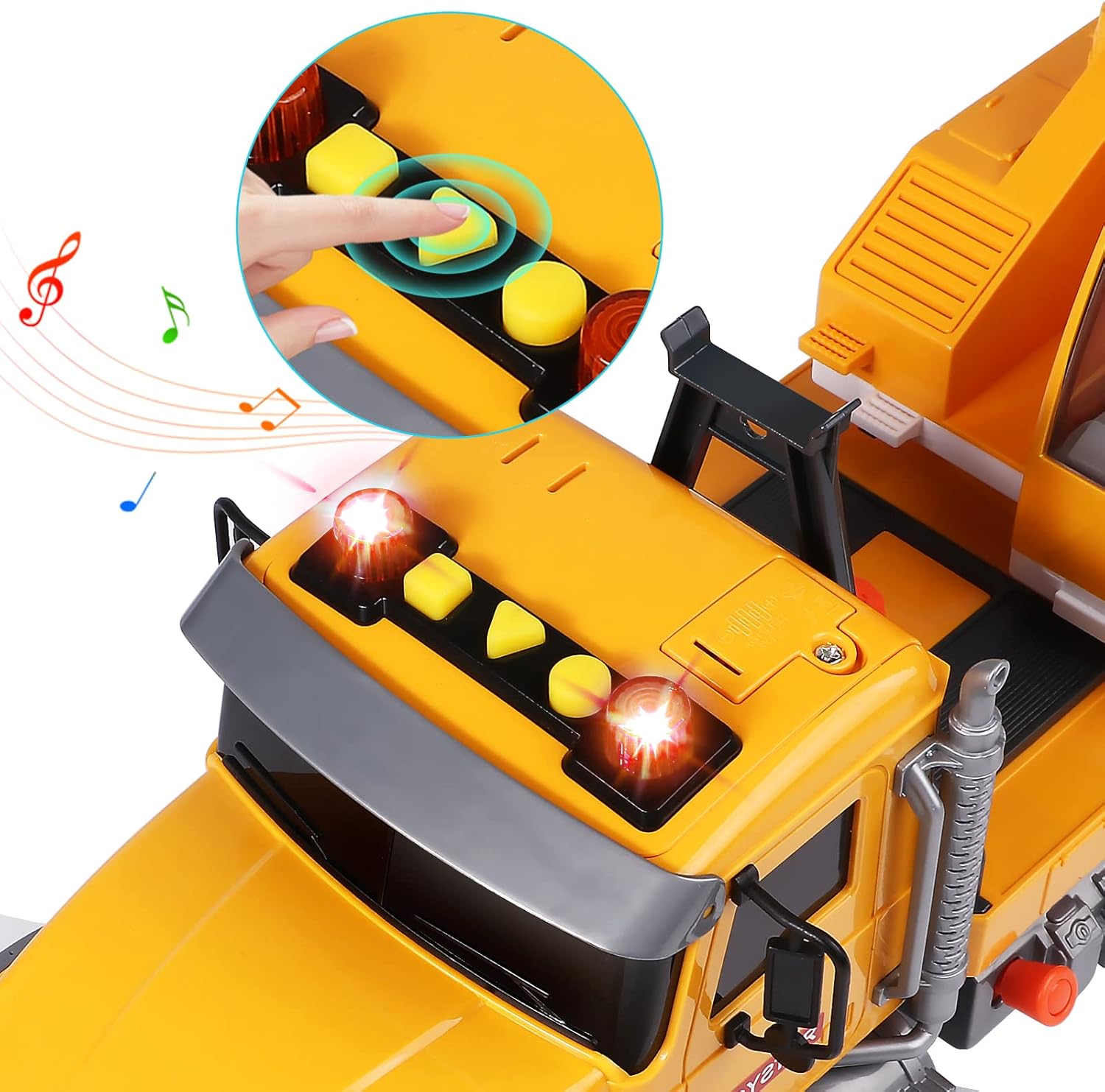 - Натисніть червону кнопку на передній частині автомобіля, щоб підняти стрілу та кнопку поруч із шиною, щоб залишити її. Все це дасть дітям багато задоволення. Кран почне випромінювати яскраві вогні, приємні звуки, а діти почують захоплюючу, хорошу музику, яка сподобається дітям під час розваг. Діти, що стосується крана для хлопчиків та дівчаток, можна грати як у кімнатах, так і на галявині, на внутрішньому дворику, у вітальні, дитячому садку та інших місцях. спереду, навіть коли дитина перестає натиснути. Трейлер оснащений невеликим штовхачем. Вертя, Великодня тощо