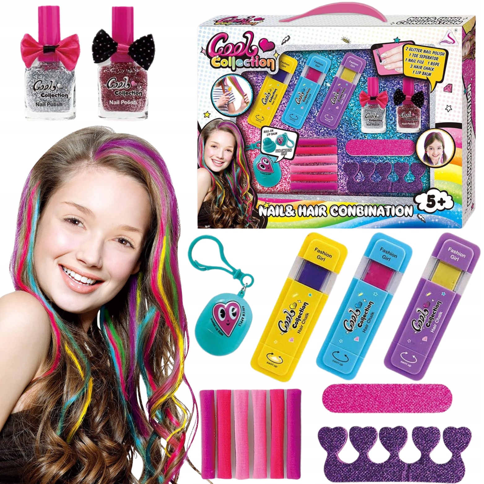 Набір для укладання нігтів і волосся, який дозволяє створювати барвисті зачіски та ефектні нігті. Ідеально підходить для кожної дівчини, яка любить грати з макіяжем.