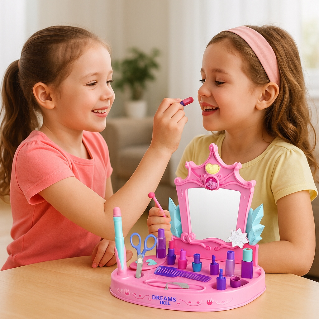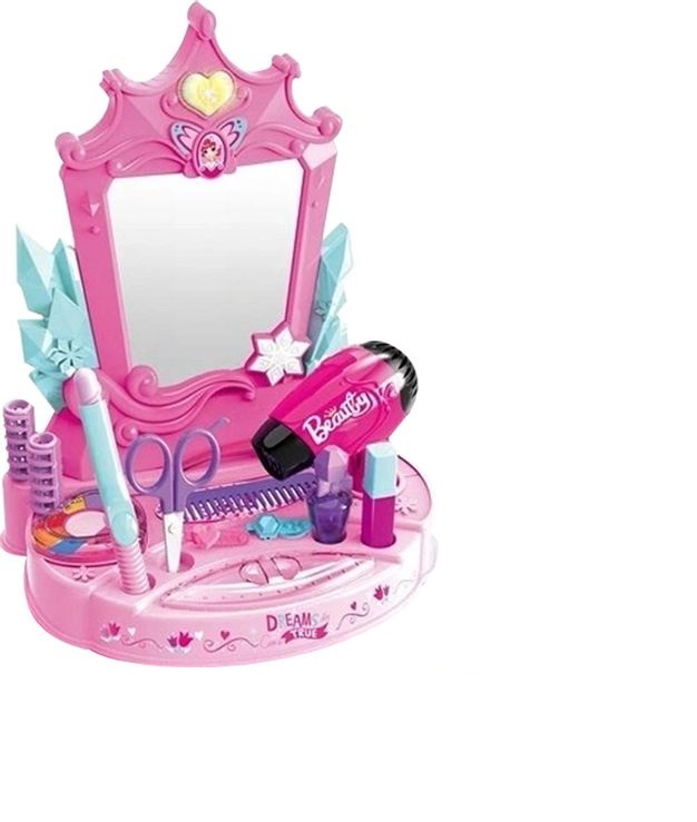 А що, якби у вас був власний, рожевий, повністю обладнаний домашній салон краси? Наш набір втілює мрії цих дівчаток із красивим туалетним столиком, який змусить серце кожної маленької дівчинки битися швидше. Що не менш важливо, набір абсолютно безпечний для дитячої шкіри, оскільки не містить косметики. Він лише прикидає їх, що дає змогу дитині повністю використовувати свою уяву.