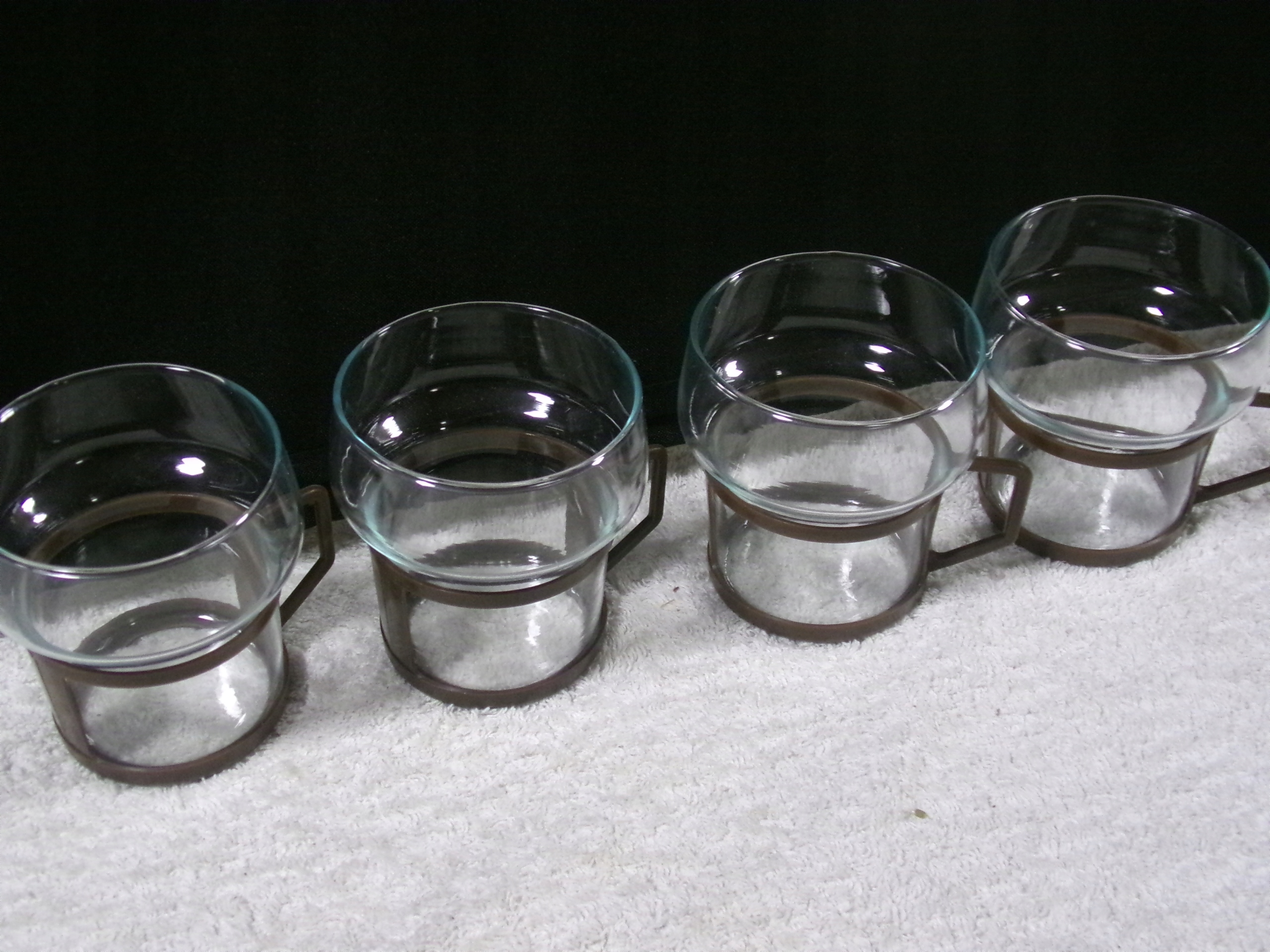 набір з 4 окулярів з кошиками з висотою 8,5 см, центральний діаметр 7 см, ємність 200 мл, вагою 0,33 кг. Дуже хороший стан збережений, без пошкоджень.