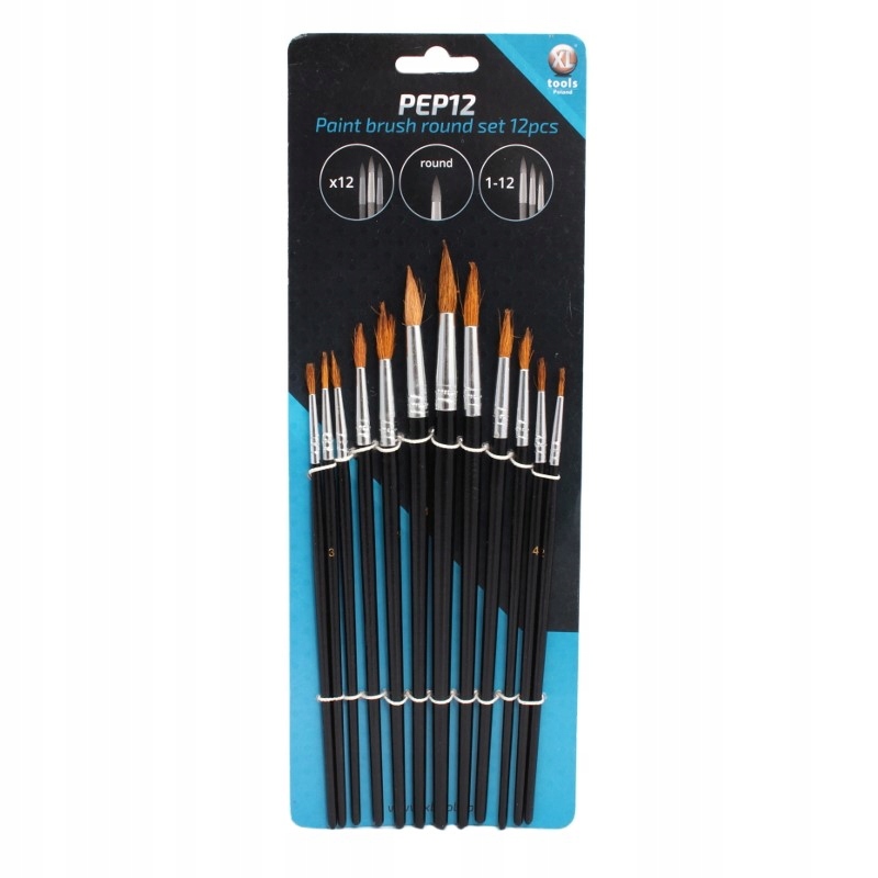 щіток круглого набору (12 шт. Щітки - від 1 до 12 мм і мають жорсткі щетини.