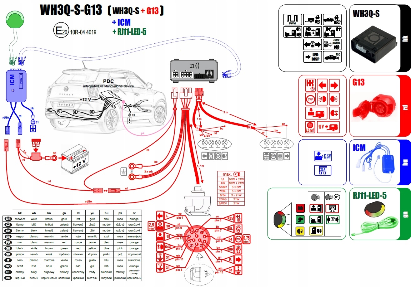 Цифровий модуль зі стандартною функціональністю WH3(Q)-S з 13-контактним роз’ємом (G13) і «повною» проводкою (тобто з так званим «постійним плюсом» і схемою зарядки причіпної батареї).