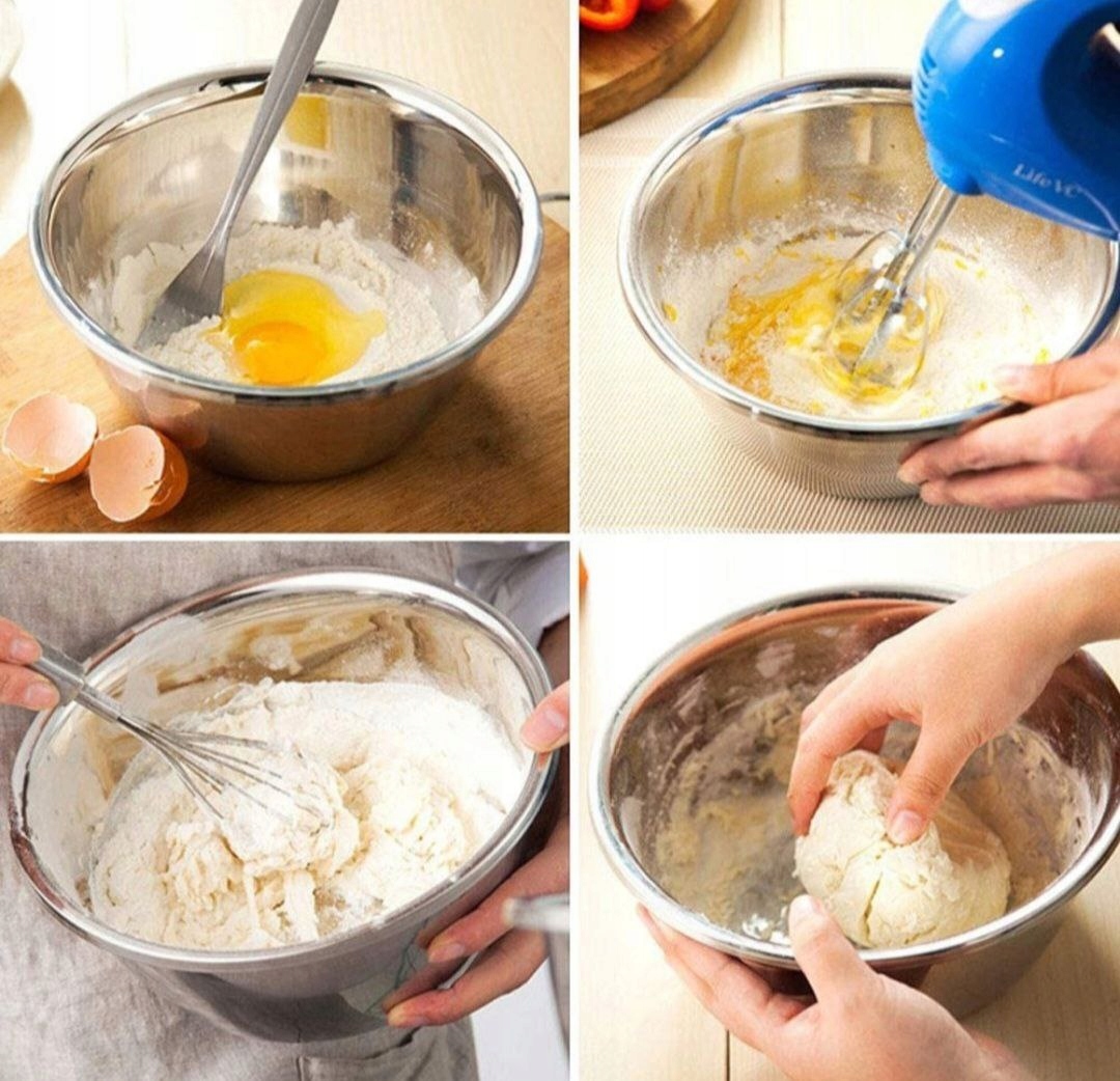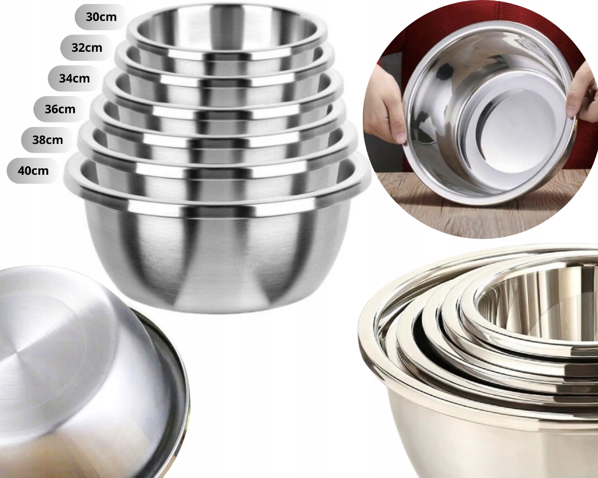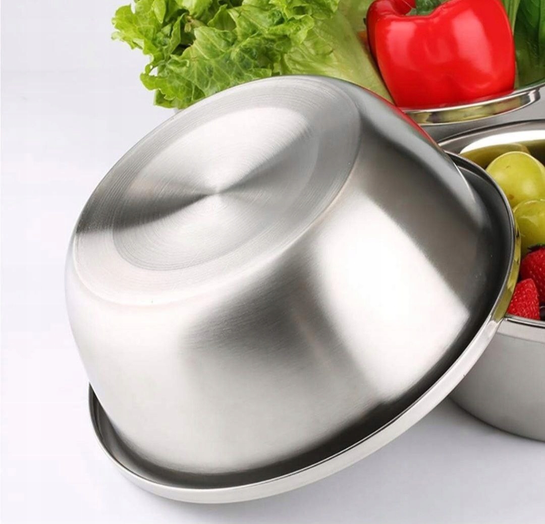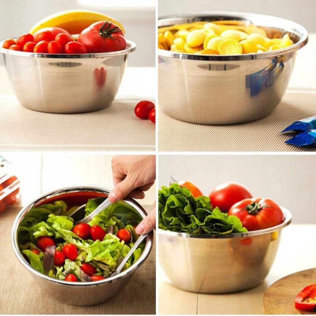 Практичний набір кухонних мисок з нержавіючої сталі - незамінне обладнання на кожній кухні. Ідеально підходить для приготування, змішування та подачі їжі. Завдяки різним розмірам ви можете легко налаштувати миску під свої потреби - від невеликих інгредієнтів до більших порцій торта чи салатів.