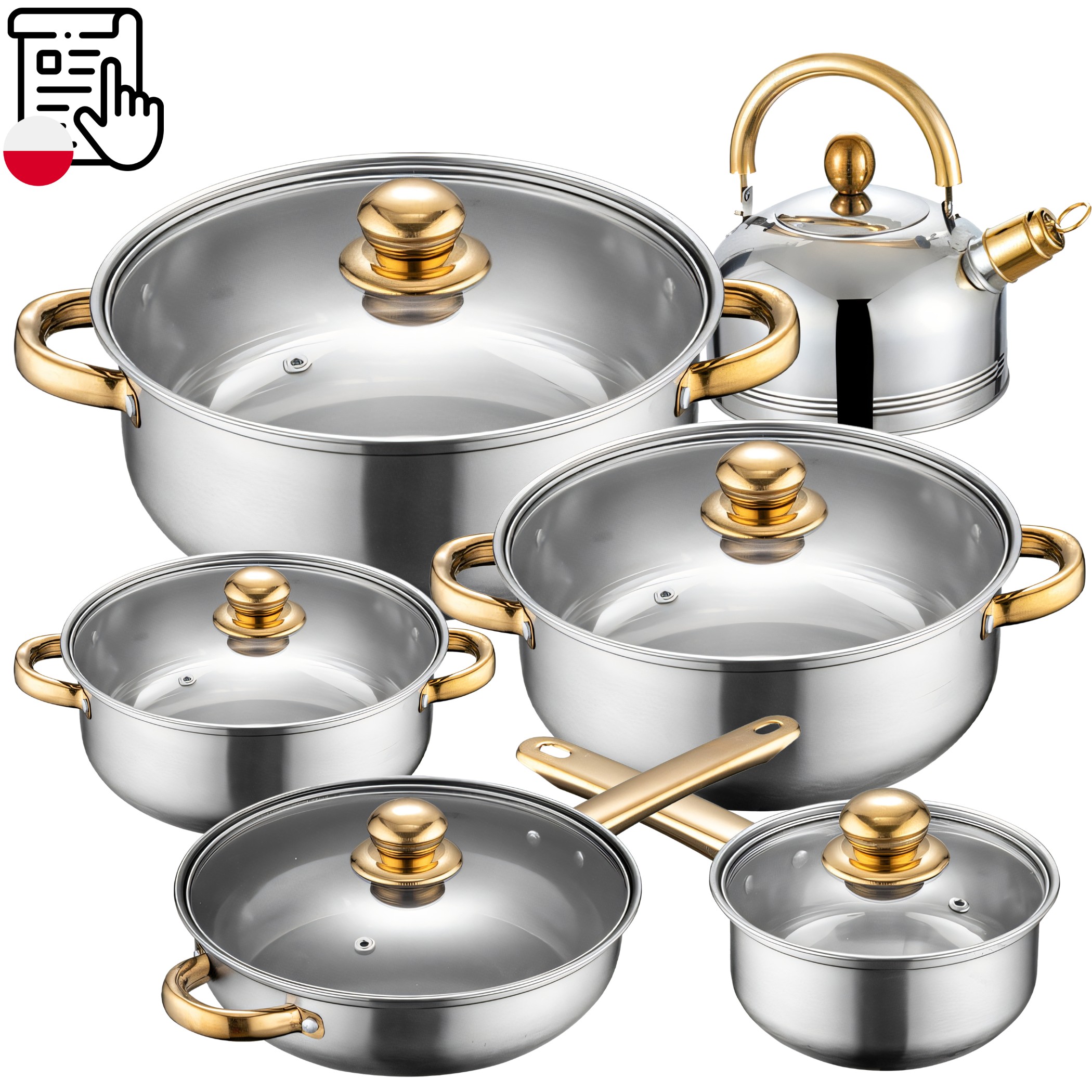 ✍️ Large set ☺️ The ability to use on a gas, ceramic, halogen stove ✏️ original design with golden elements ✉️ high quality workmanship ♥ ♥ ♥ ️ durable design ♠ ️ ideal as gift ♣ ️ Довговічність протягом багатьох років ♦ ️ універсальність використання ☀ Зручність та зручність використання - різні розміри ⭐ нержавіюча сталь ☺ посудомийна машина ♦ ️ сертифікат CE ♥ ️