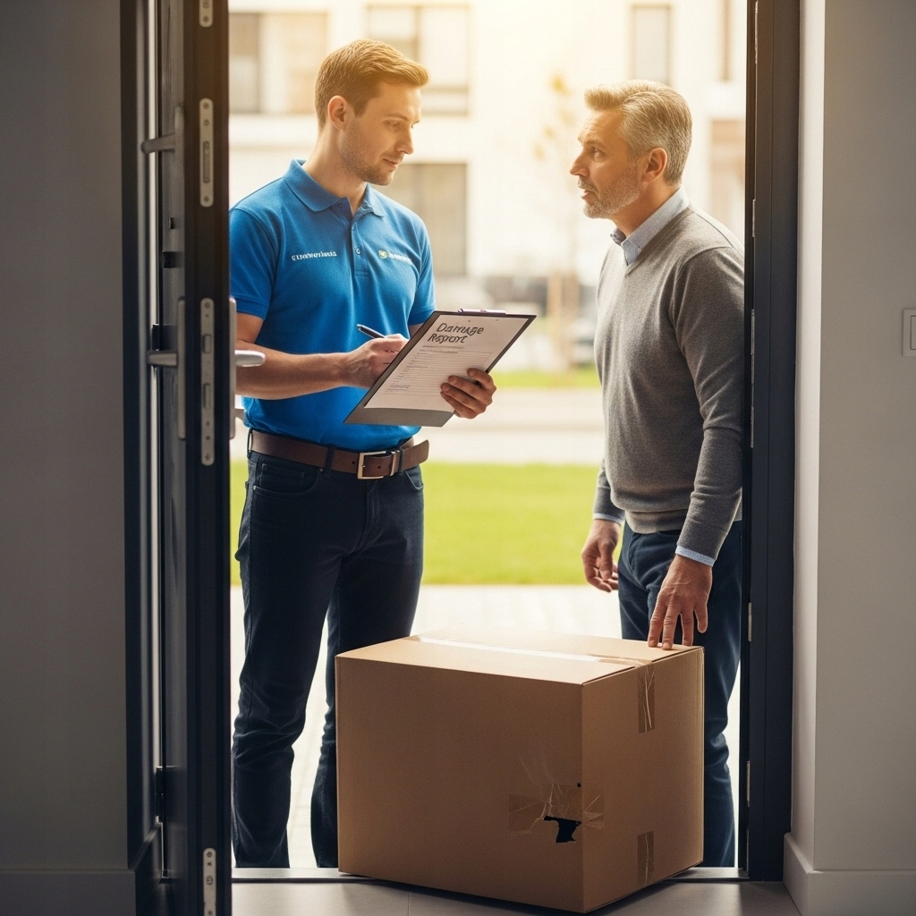 Якщо ви помічаєте пошкодження упаковки під час отримання пакету, попросіть кур'єра написати звіт про збитки. Якщо це не вдасться, зверніться до кур'єра або транспортної компанії - кур'єр повернеться і зробить протокол . Ми робимо скарги безкоштовно , ви не несете жодних витрат.