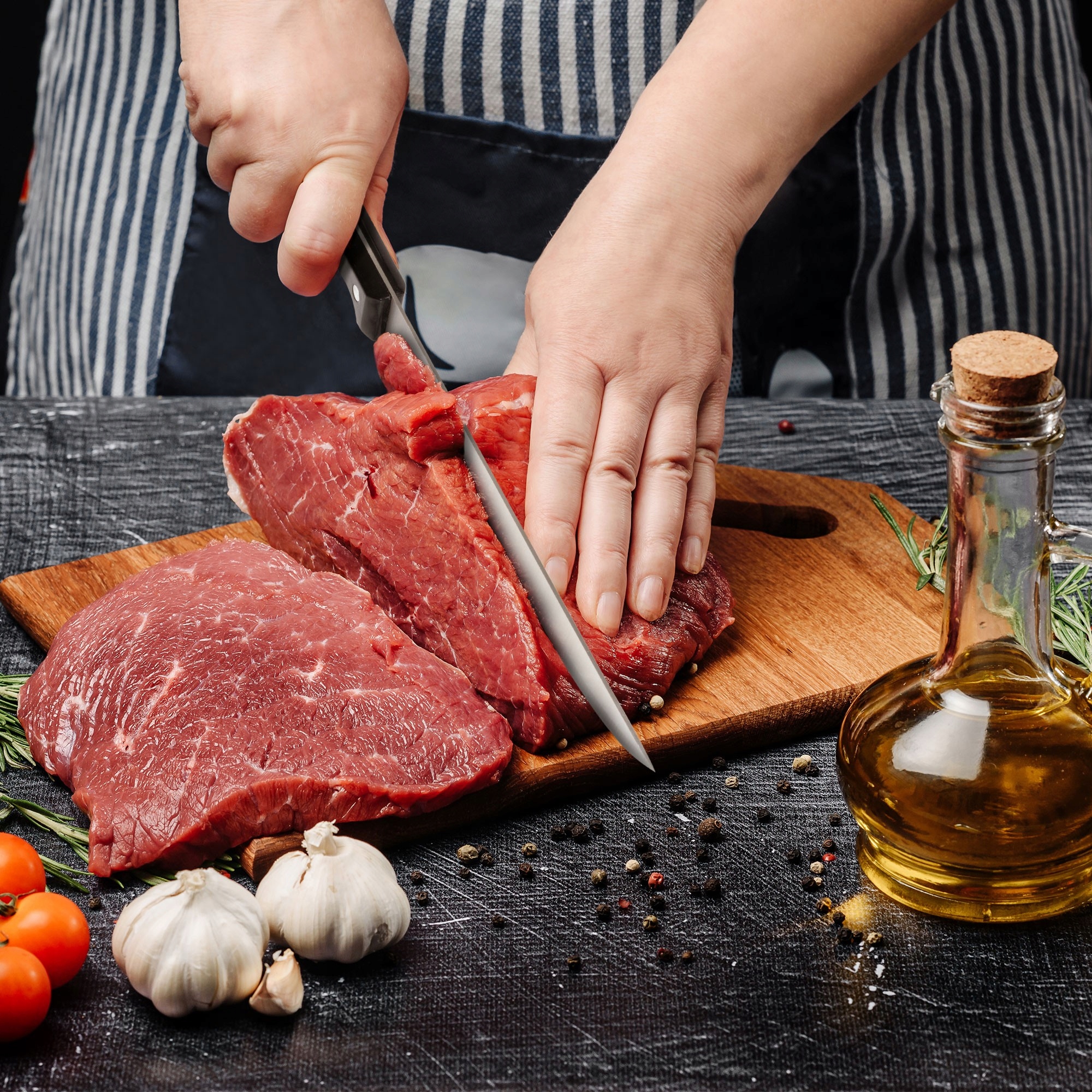 Високоякісні леза з високоякісної нержавіючої сталі гарантує постійну гостроту і точний різ по всьому лезу. У набір входить кухарський ніж, ніж для філе, ніж для хліба, ніж універсальний і ніж для овочів - все, що потрібно для професійної роботи на кухні. Ножі для біфштексів є додатковою перевагою для любителів гриля та ідеальним способом зручного нарізання м’яса.