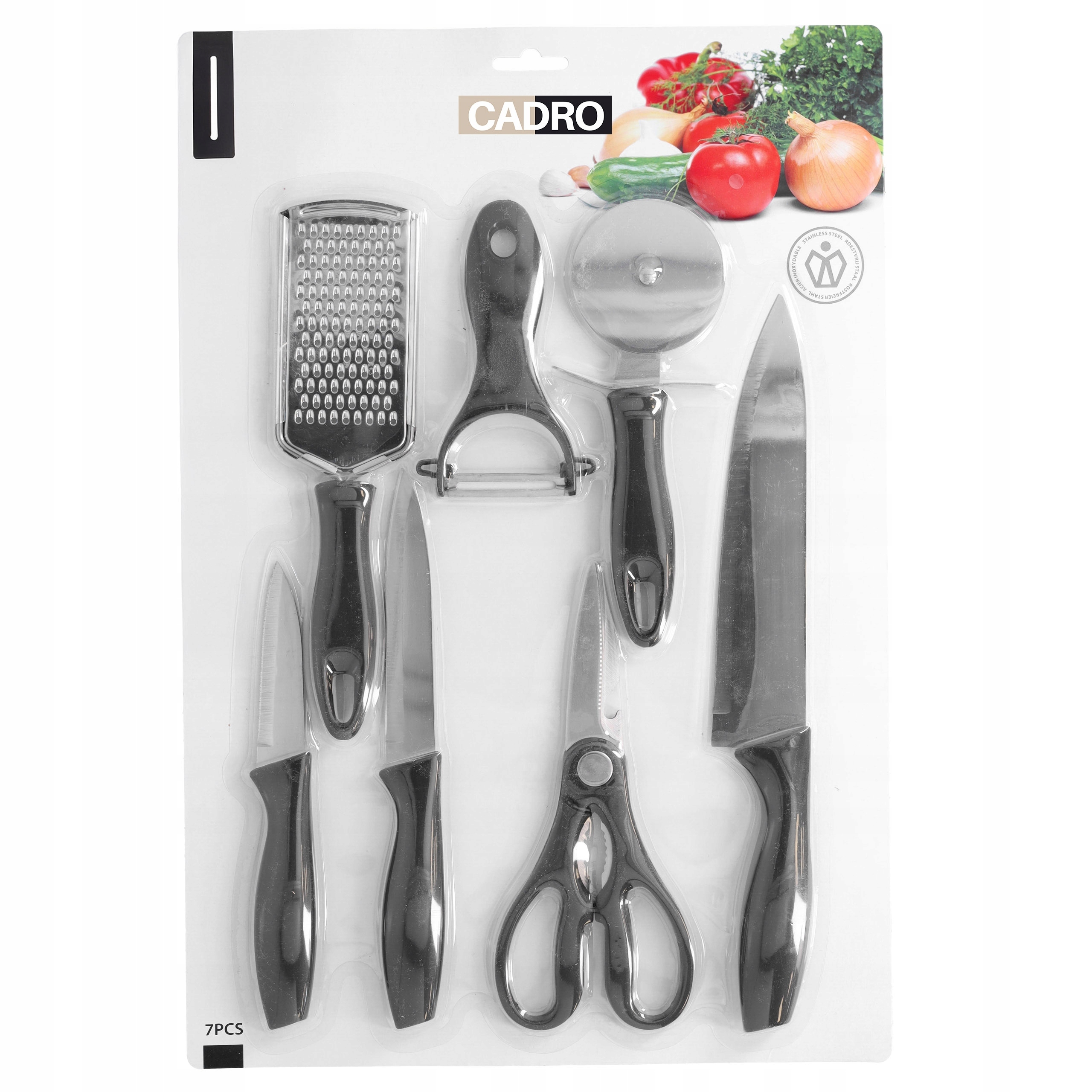 НАБІР КУХОННИХ НОЖІВ 7в1 терка для сиру ніж для піци ножиці очисник