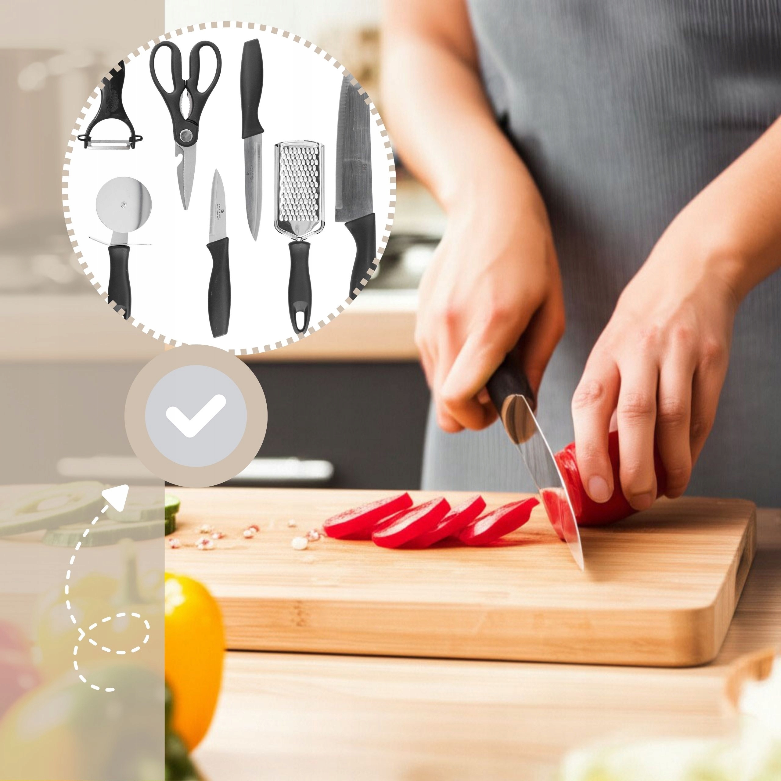 Набір підійде як новачкам, так і досвідченим користувачам. Містить інструменти для нарізання, очищення, натирання та різання піци, що робить його універсальним рішенням для щоденного використання.