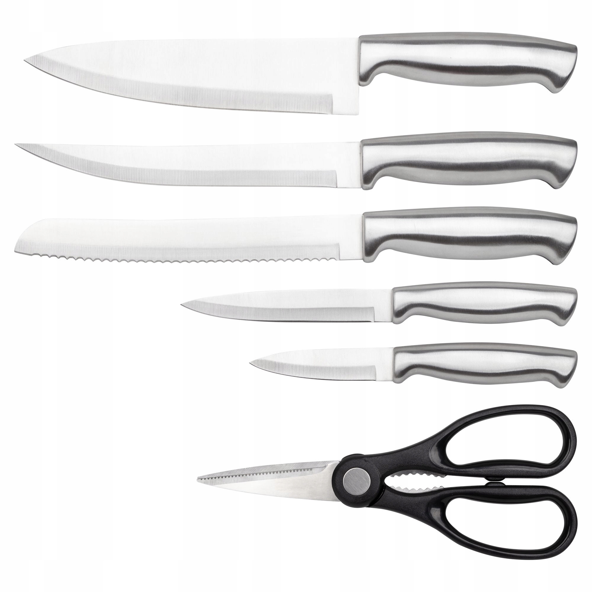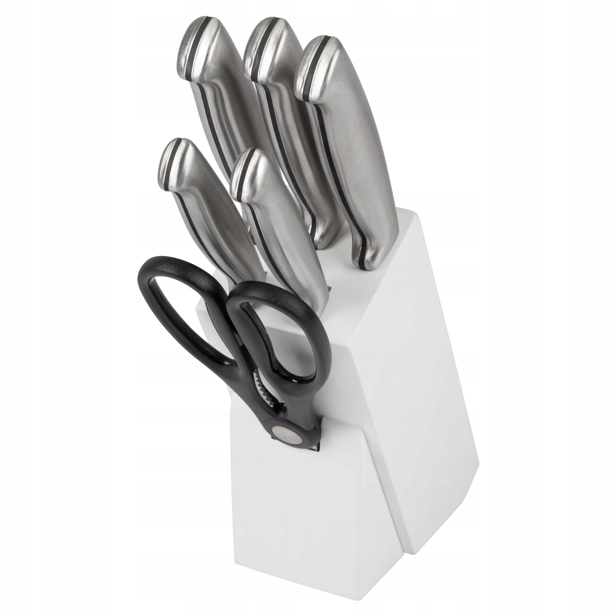 Набір складається з п'яти ножів різної довжини та призначення, а також універсальних ножиць, які стануть у нагоді в багатьох кулінарних ситуаціях.