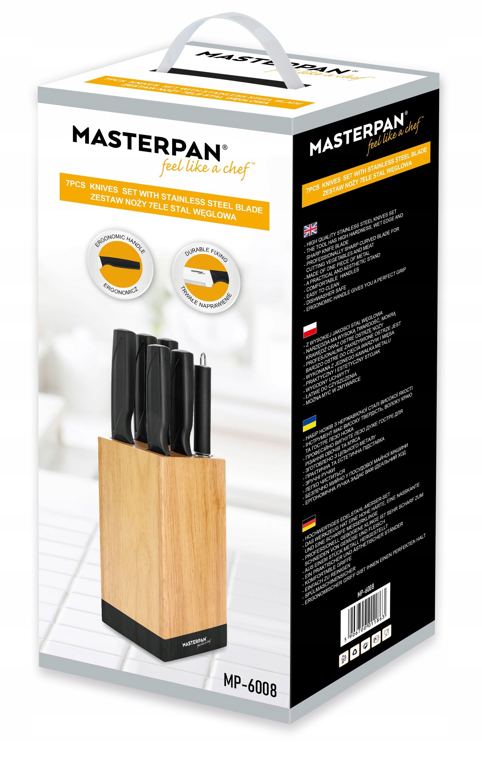 Оплачивая «Набор кухонных ножей Masterpan из 7 предметов – элегантность и точность в любой момент», вы можете быть уверены, что данное изделие из каталога «Наборы ножей» будет доставлено из Польши и проверено на целостность. В цене товара, указанной на сайте, учтена доставка из Польши. Внимание!!! Товары для Евросоюза, согласно законодательству стран Евросоюза, могут отличаться упаковкой или наполнением.