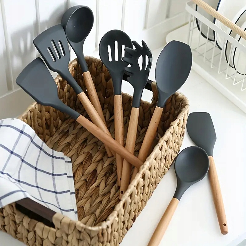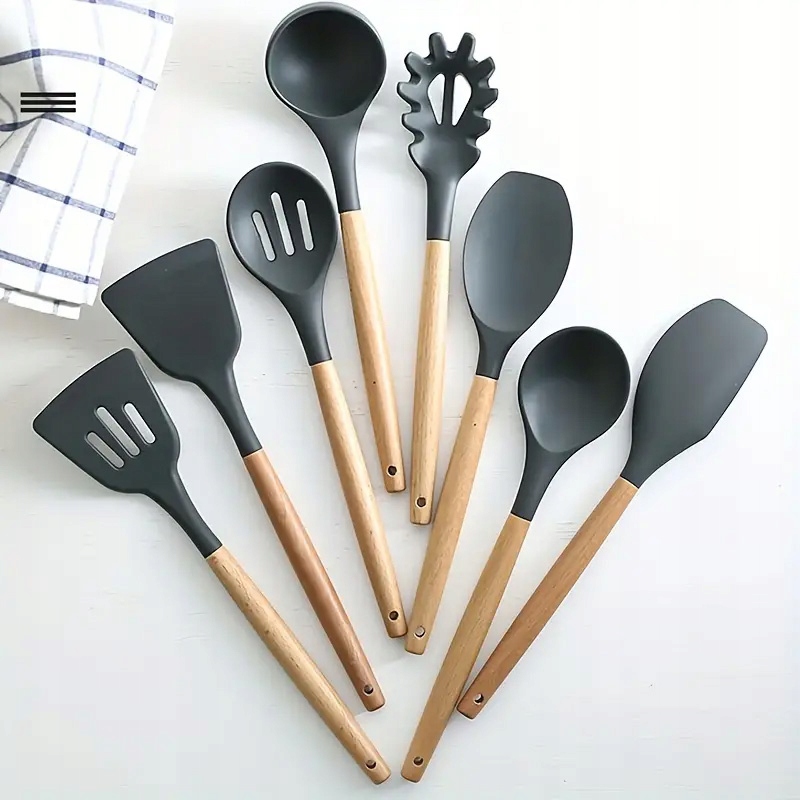 Наш набір кухонних аксесуарів - ідеальне рішення для всіх, хто цінує функціональність і стиль на кухні. Набір складається з 12 високоякісних силіконових приладів, які не тільки б >вони спростять повсякденне приготування, але й зроблять кожну страву ще смачнішою.