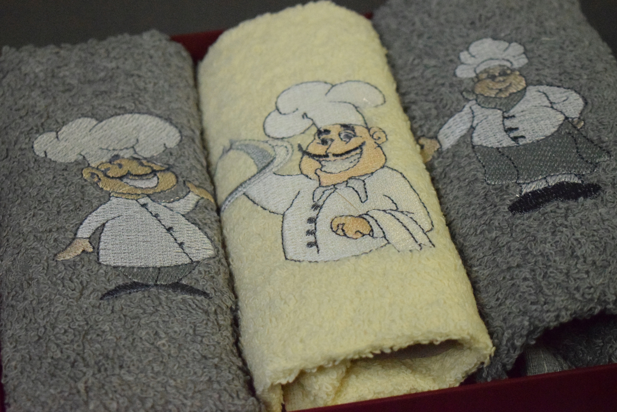 НАБІР КУХОННИХ РУШНИКІВ 3 шт. 30х50см ВИШИВАНКА сірий екрю вишивка 3 кухаря