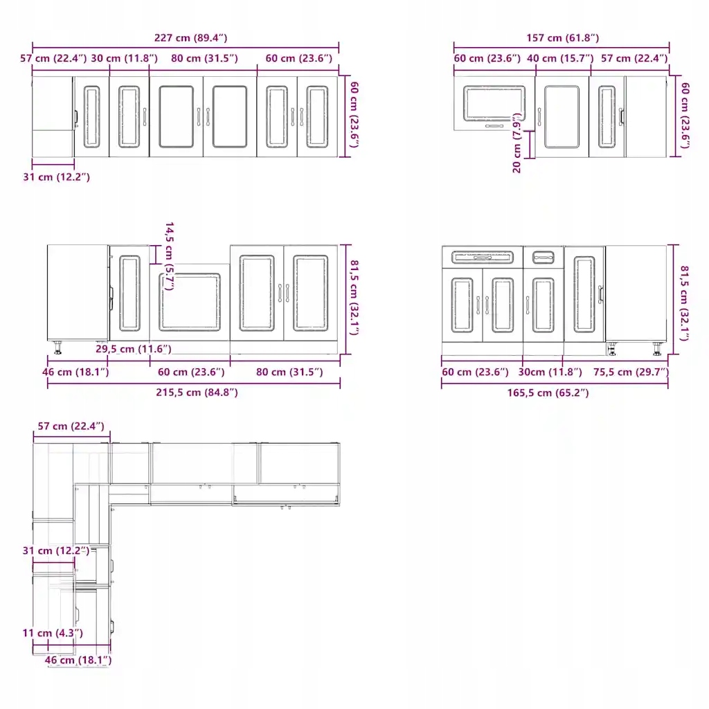 Набір кухонних шаф з 11 предметів із елегантним дизайном дозволяє оптимізувати використання простору на кухні та надає багато місця для зберігання речей.