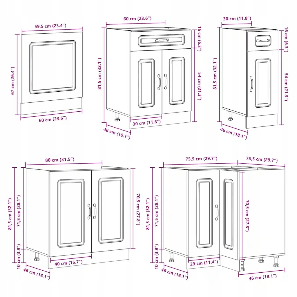 - 1 x нижня кухонна шафа: 80 x 46 x 81,5 см (Ш x Г x В)