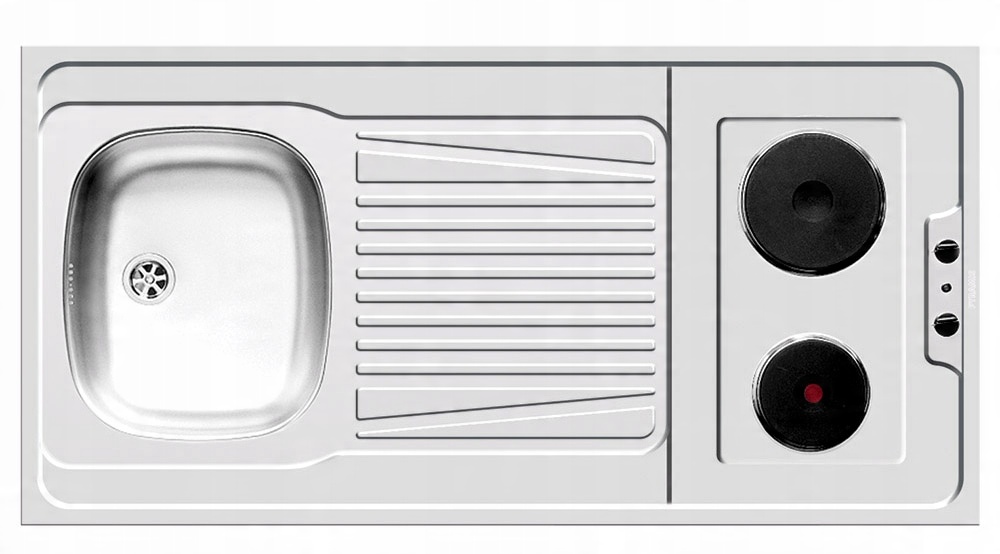 Незважаючи на невеликі розміри, мінікухня забезпечує повну ефективність. Він оснащений плитою, холодильником з морозильною камерою, сталевою раковиною та кухонним змішувачем - він задовольнить усі ваші кулінарні потреби.
