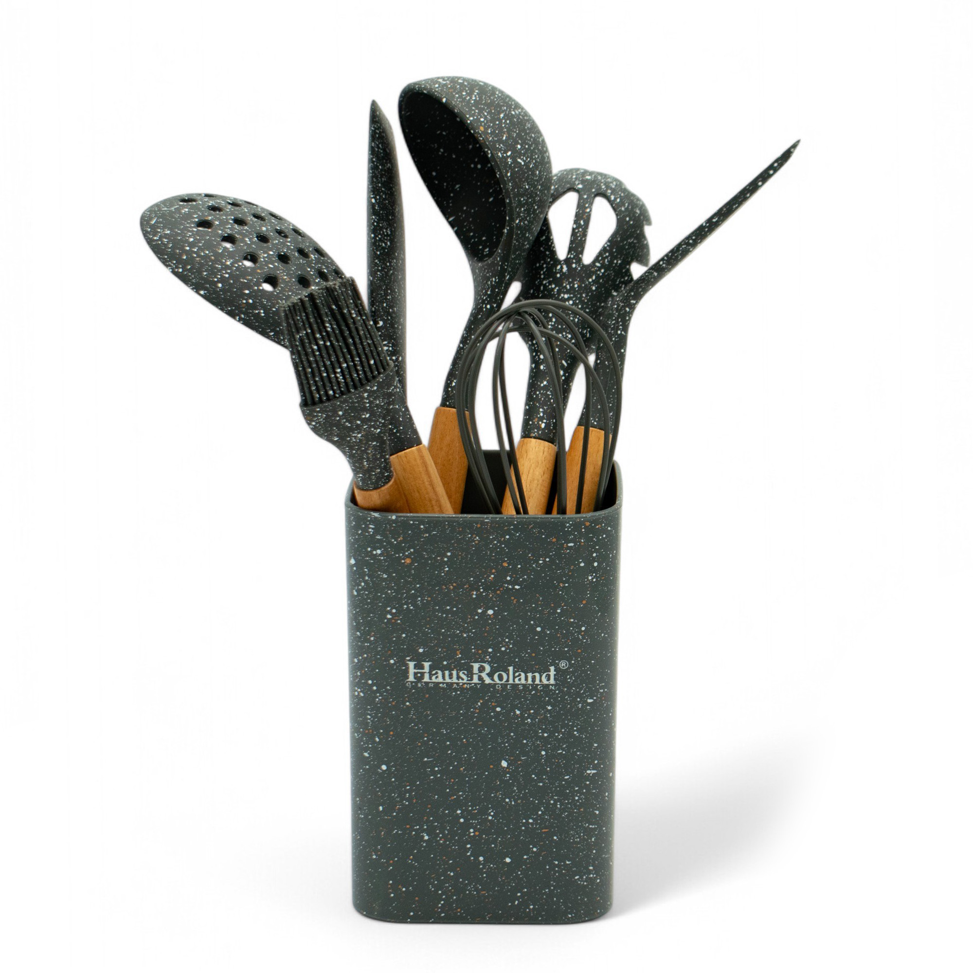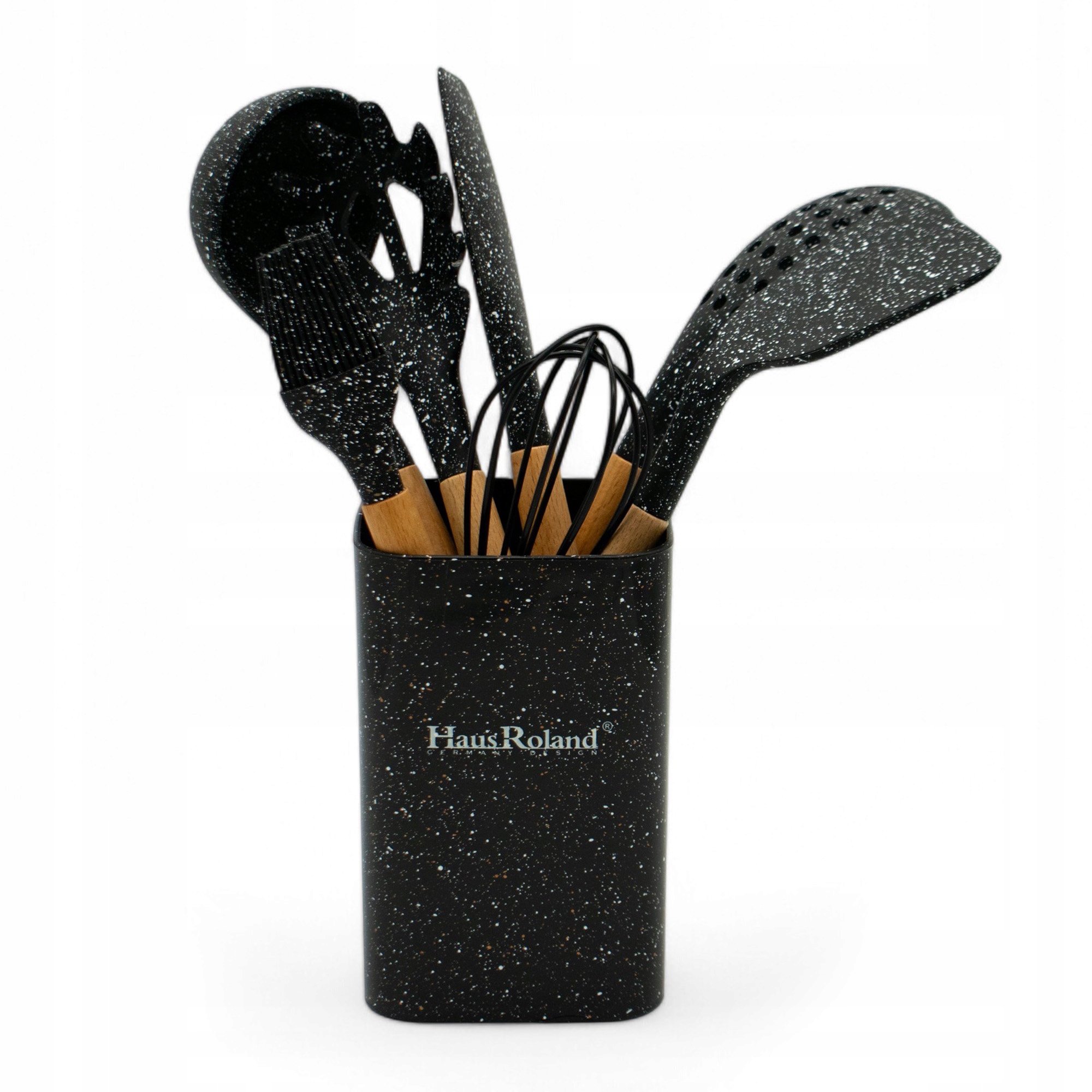 Набір 8-елементів кухонного посуду -це практичний набір, необхідний на кожній кухні. Він складається з, серед інших лопатів, прорізної ложки, ковша, віночки та ложки для макаронних виробів. Усі елементи виготовлені з постійних та безпечних матеріалів , стійкі до високих температур. ергономічні ручки забезпечують зручність та певну зчеплення. Такий набір сприяє щоденному вареному e і робить приготування їжі приємним.