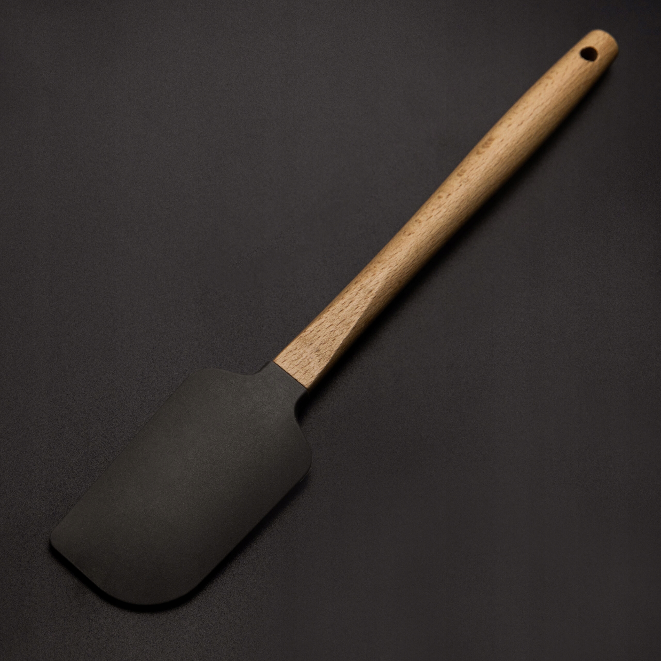 Шпатель виготовлений із високоякісного силікону без бісфенолу А, а його ручка виготовлена з добре відшліфованої деревини, що забезпечує зручність використання.