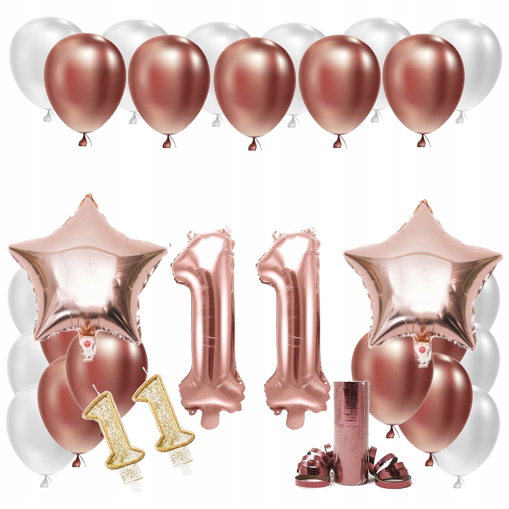 НАБІР КУЛЬ 11 ДЕНЬ НАРОДЖЕННЯ РОЖЕВЕ ЗОЛОТО 100 СМ