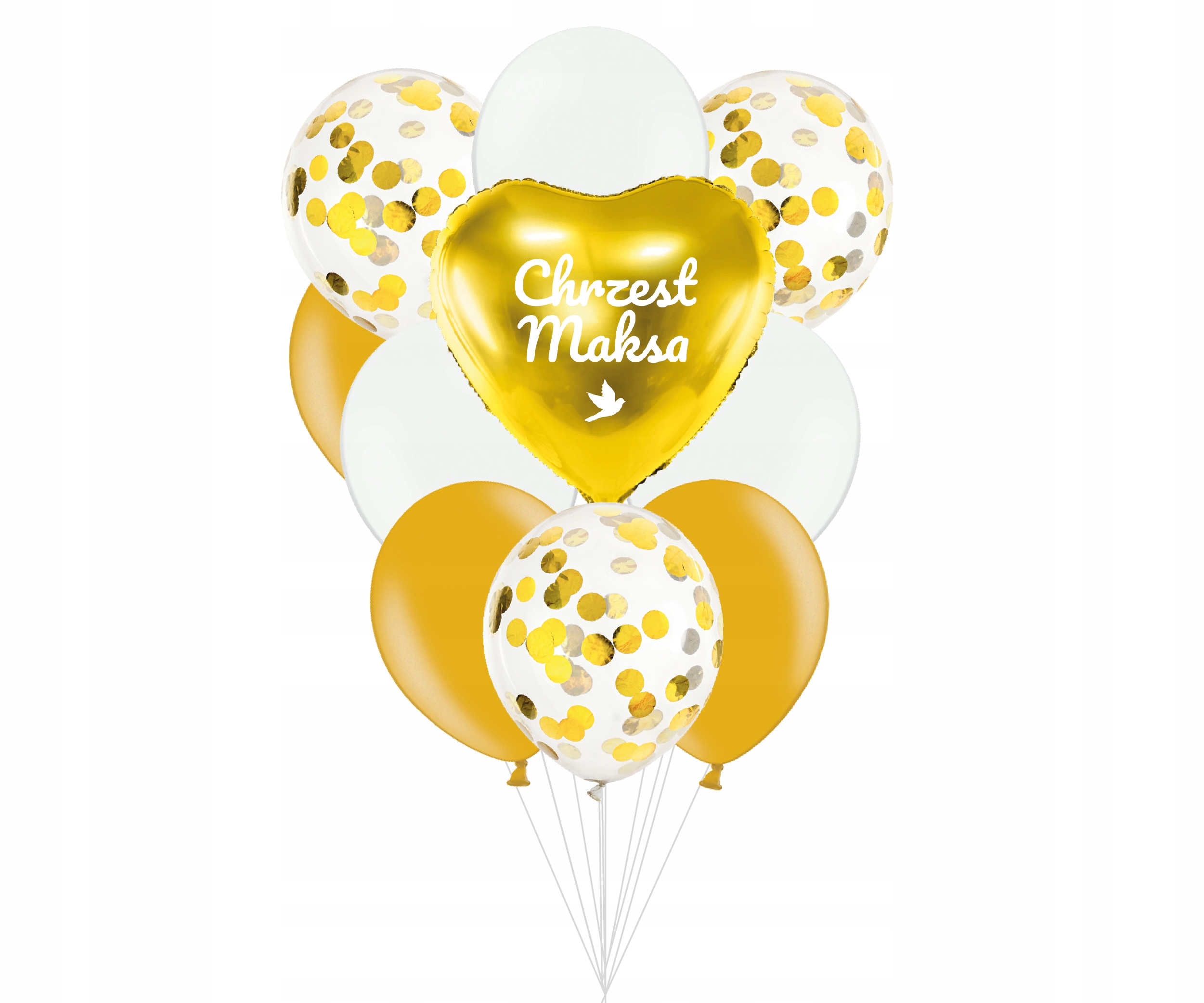 Набір повітряних кульок з написом хрещення та ім'ям дитини.
