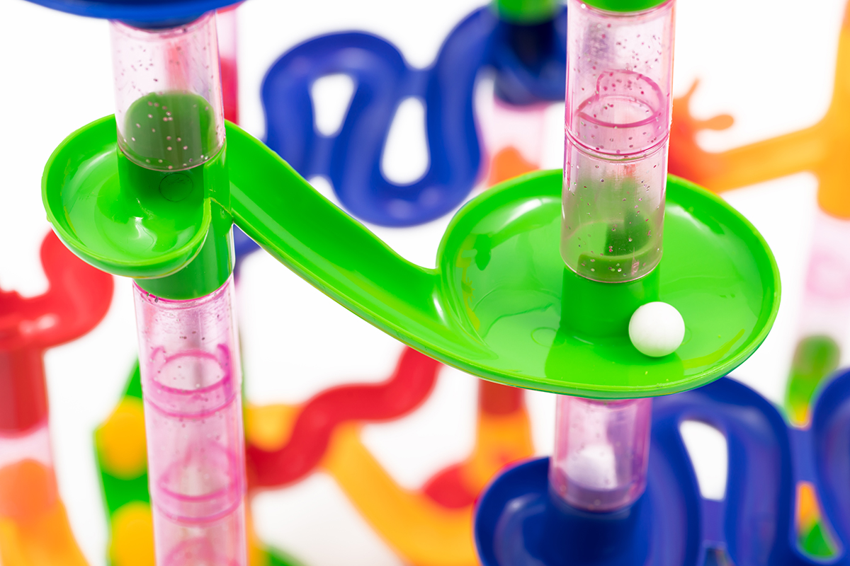 Доріжка має бути сконструйована та зібрана так, щоб м’яч подолав увесь маршрут, що є великою перевагою Набір полягає в тому, що його можна розширювати, необмежений, об’єднавши кілька наборів в один, ви можете побудувати справді жахливі споруди.