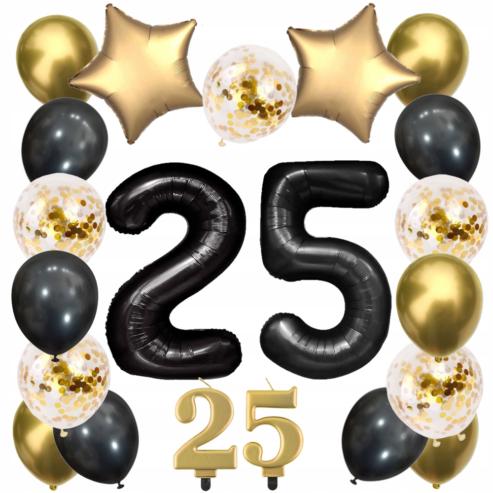 НАБІР КУЛЬОК 25 День народження ХРОМ ЧОРНИЙ 100 см