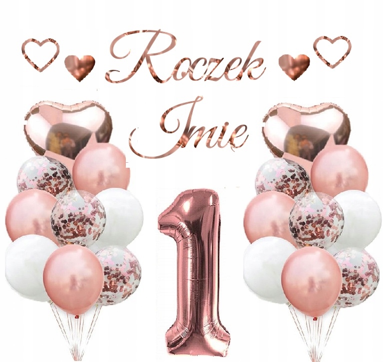 Набір кульок для декору на ЮВІЛЕЙ, 1 день народження GOLD ROSE + ім'я
