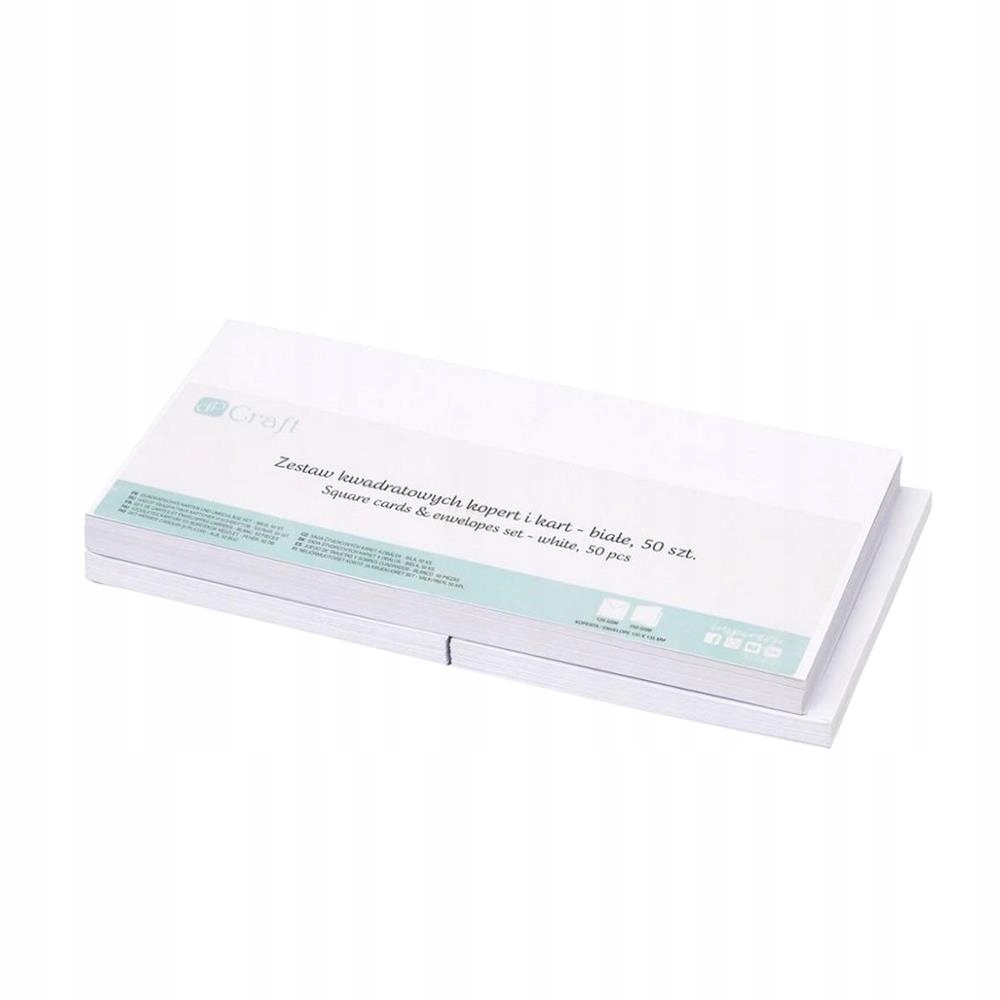 Набір із 50 білих листівок і 50 білих конвертів квадратного формату.