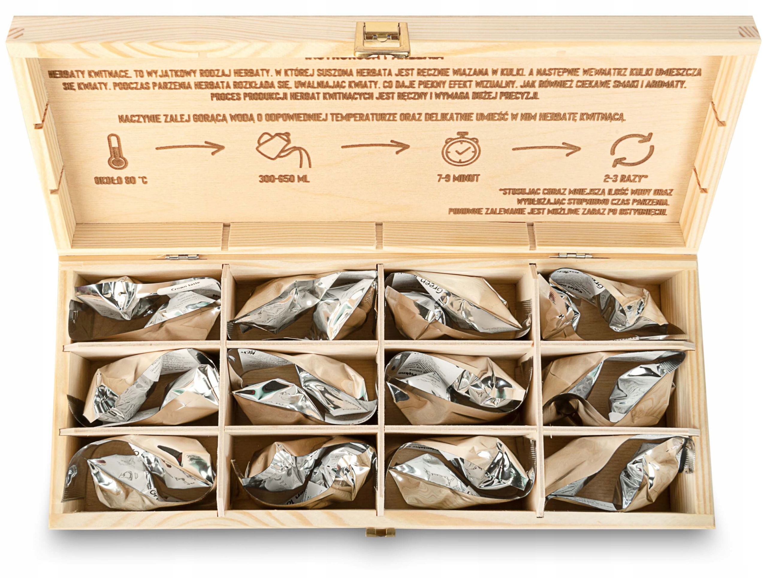 Дерев'яна коробка з сосни, що містить 24 штуки квітучого чаю