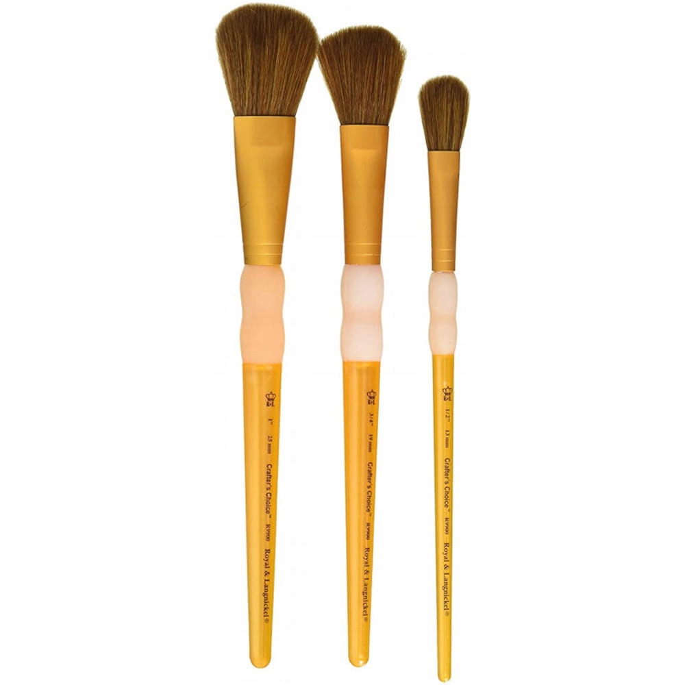 Набір включає 3 пухнасті синтетичні щітки, що імітують верблюду щетину від Royal & Langnickel. Кисть присвячені головним чином акварелями та водоймам. Відмінно при вбивстві великих кольорових плям.
