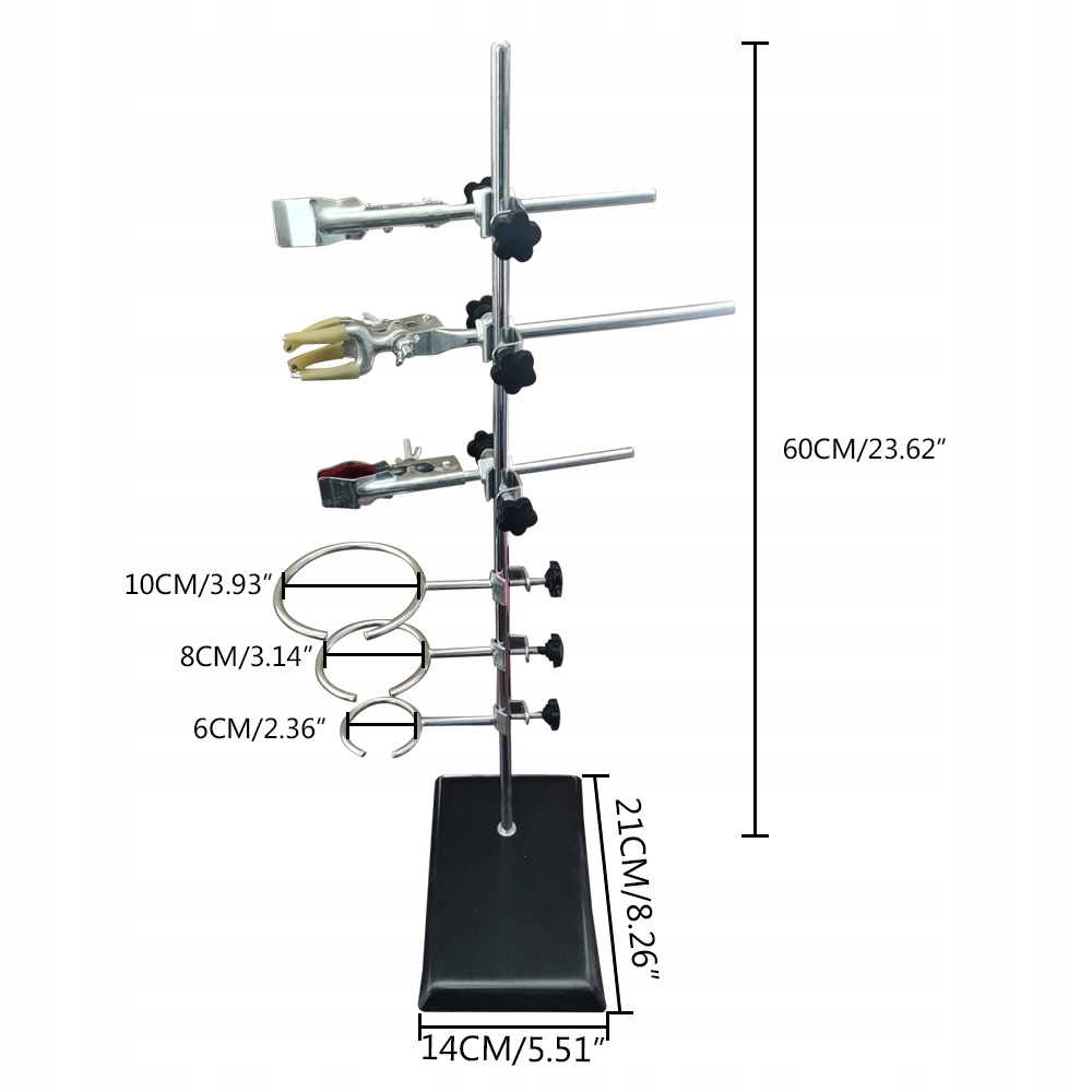 Квадратна залізна основа: має стабільну квадратну основу з розмірами 14х21 см, що забезпечує надійну підтримку різних лабораторних апаратів.