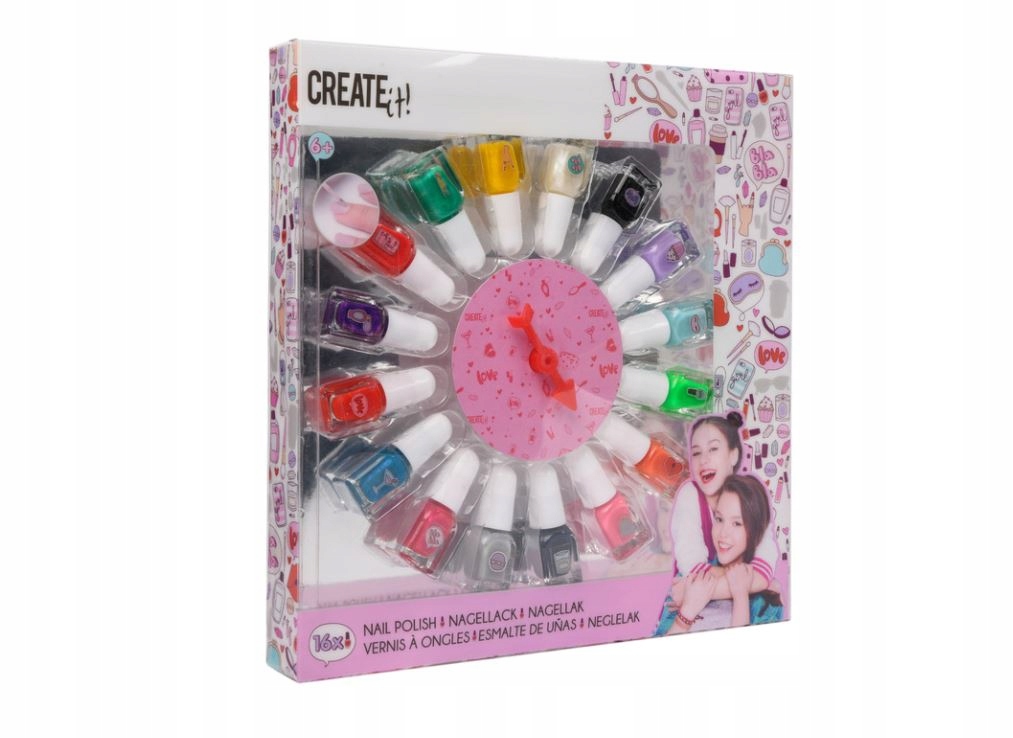 Створіть свій власний стиль! Цей набір містить цілих 16 різних лаків для нігтів красивих кольорів, а також спеціальний аркуш з прикрасами. Завдяки ньому кожна дівчина зможе створити власний салон краси і виступити в ролі нейл-стиліста. Пограйте з друзями в гру - покрутіть спеціальну стрілку з набору і дозвольте долі вирішити, яким лаком ви нафарбуєте нігті.