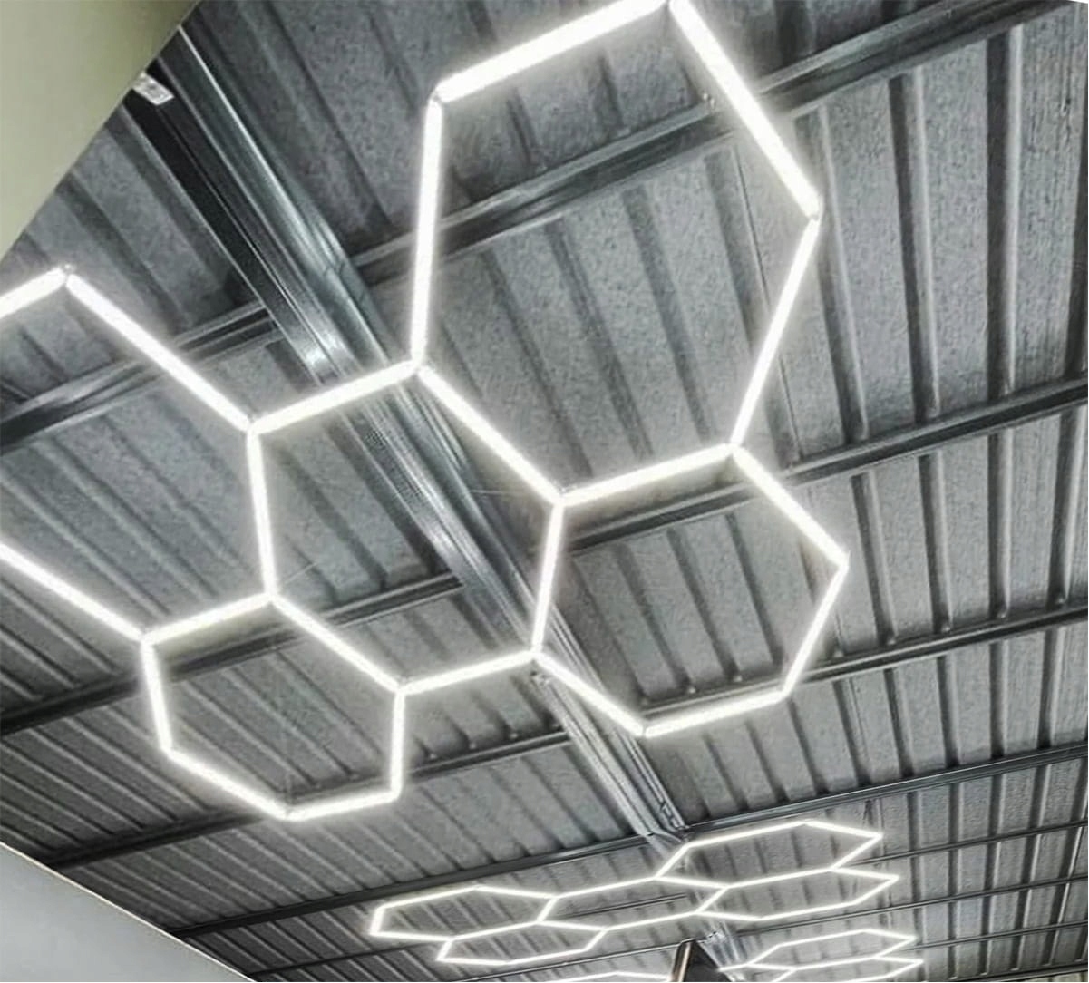 Створіть професійне та ефектне освітлення з набором LED HEXAGON 11 потужністю 368W і кольором холодного світла 4000K. Ця обширна система на основі світлодіодних модулів у шестикутному розташуванні забезпечує чудові умови роботи та сучасний вигляд простору. Ідеальний вибір для майстерень, салонів деталізації, студій, комерційних і допоміжних приміщень.