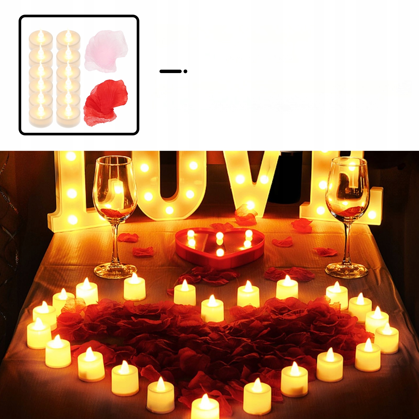 НАБІР LED СВІЧОК ТА ПЕЛЮСТОК ТРОЯНД ДЛЯ ЗАРУЧИН ТА ВЕЧІРОК