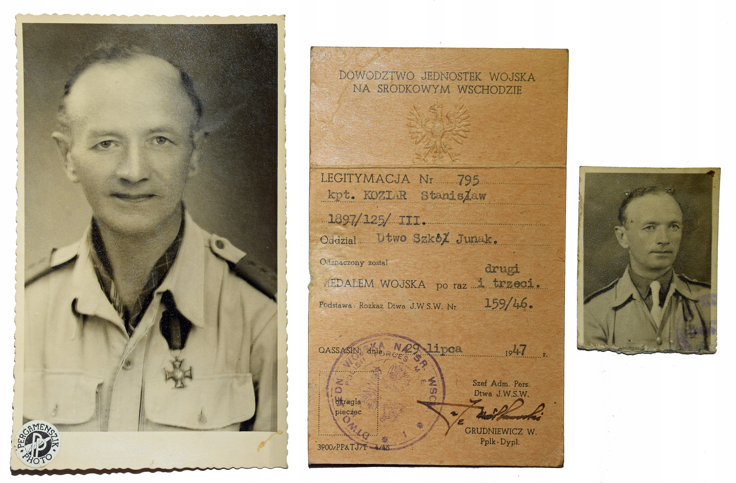 Командир командної роти СБСК - комендант Юнаківської школи В комплекті значки СБСК з цифрою 20, срібло. Собачий жетон, значок Юнакської школи (без поштового зв’язку), срібло, австралійський значок, нагорода армійською медаллю, фото з хрестом В.М.
