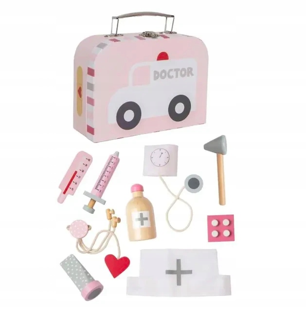 У набір входять усі необхідні аксесуари для Маленького Доктора, виготовлені з особливою увагою до кожної деталі, більшість із них виготовлені з дерева та пофарбовані екологічною фарбою. Ідеально підходить для творчих і рольових ігор - вчить дітей долати страх перед візитом до лікаря.