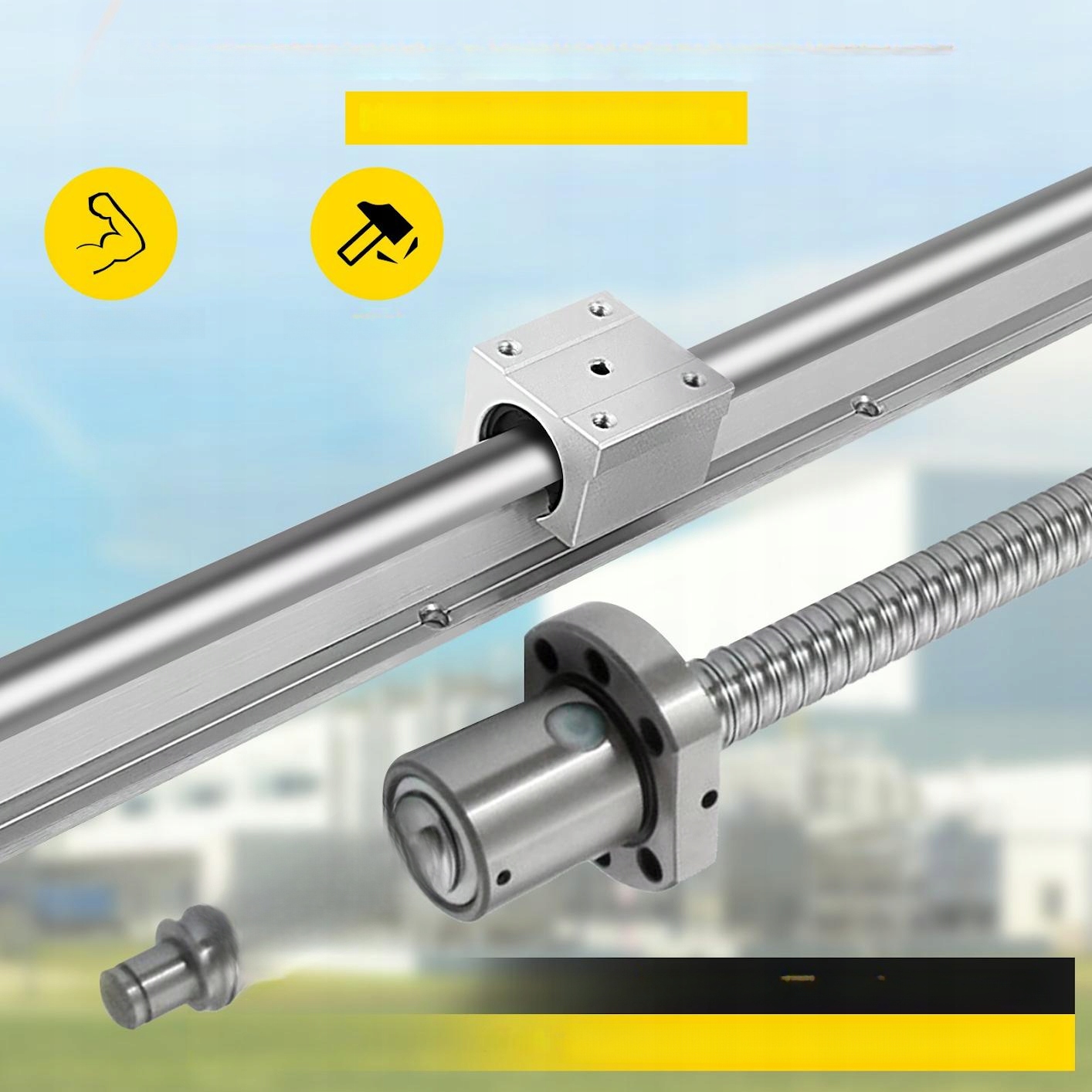 Антикорозійна обробка поверхні забезпечує безперебійну роботу. Використання сталевих кулькових гвинтів високої твердості, сталевого блоку підшипників і опори з алюмінієвого сплаву гарантує високу довговічність.